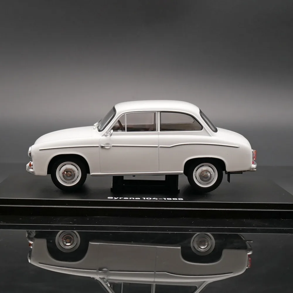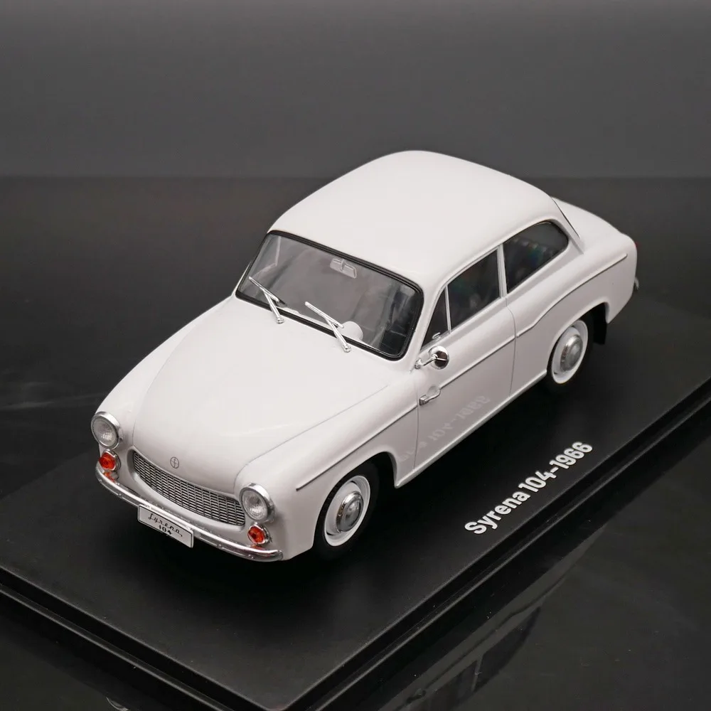 Experience the charm of the 1966 Syrena 104 with this meticulously crafted diecast alloy model. Perfectly scaled at 1:24, it captures the vintage essence with a sleek, rounded body design and glossy white finish that highlights the alloy craftsmanship. Its finely detailed features include a contoured roof, well-defined hood, and embossed door lines. The black-tinted windows with transparent detailing, delicately imitated rear-view mirrors, and period-specific metallic hubcaps give it a highly realistic appearance. The small size is ideal for collectors looking for a refined display piece that exudes elegance. This model offers the perfect balance of nostalgia and craftsmanship, elevating your collection or home décor with authentic style and intricate detail.