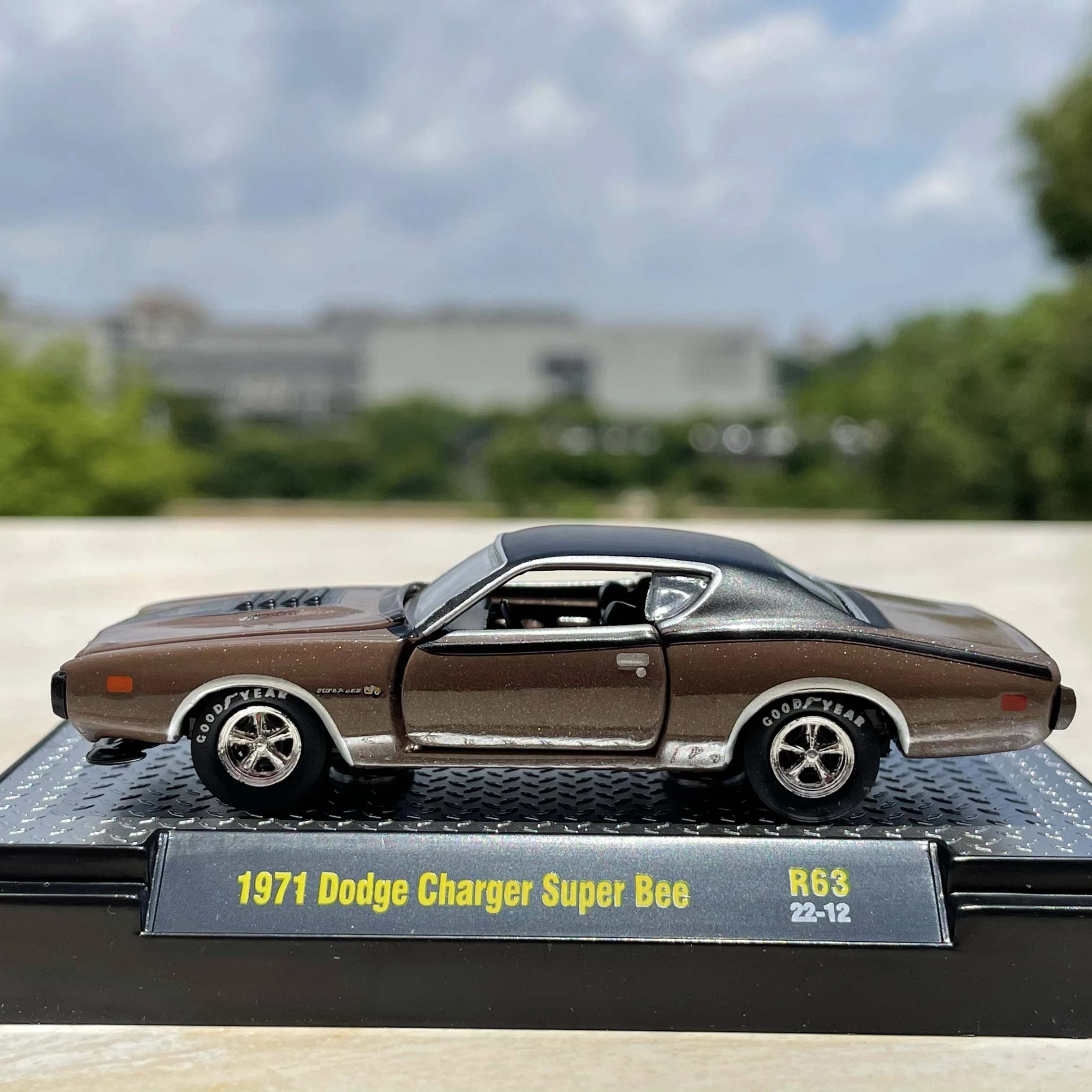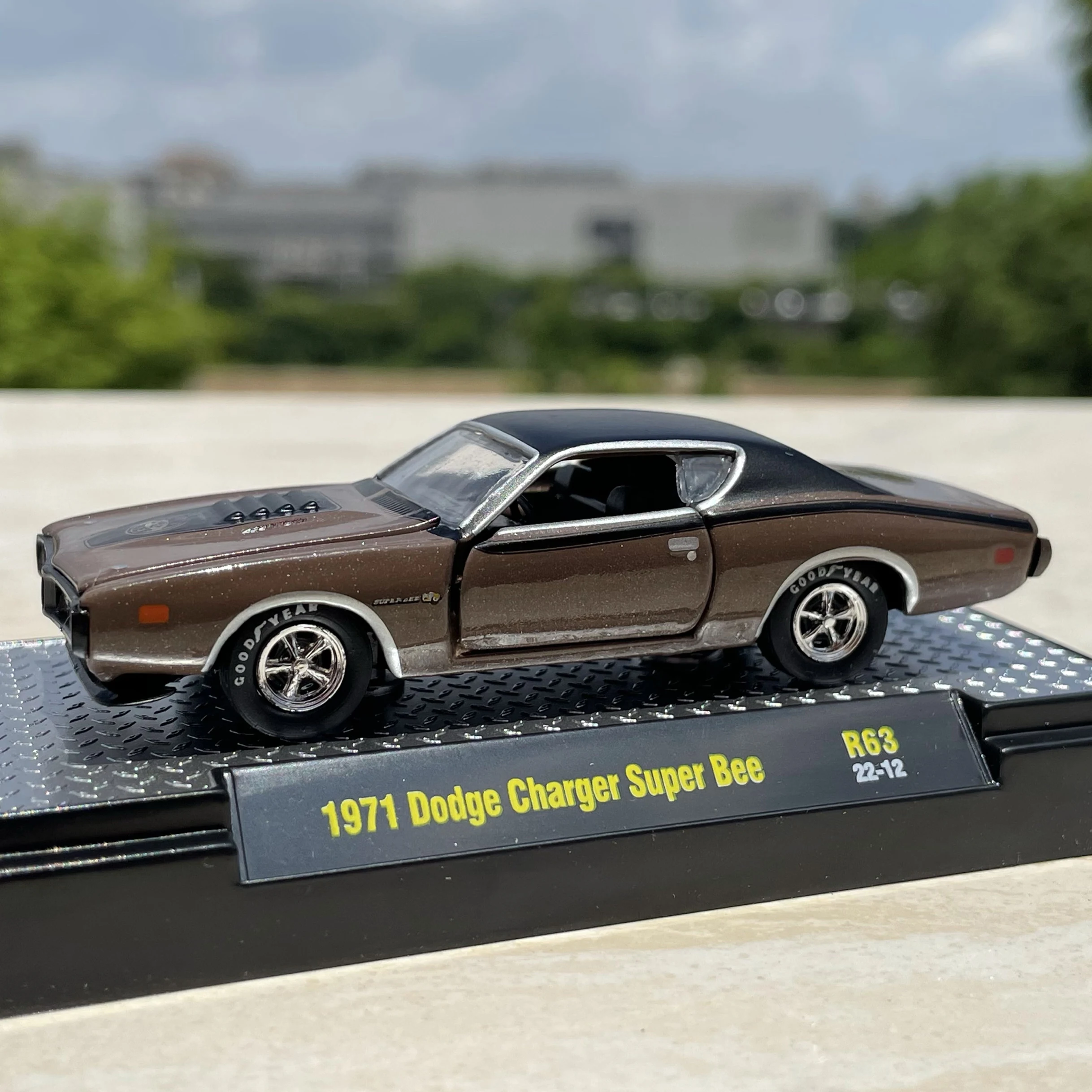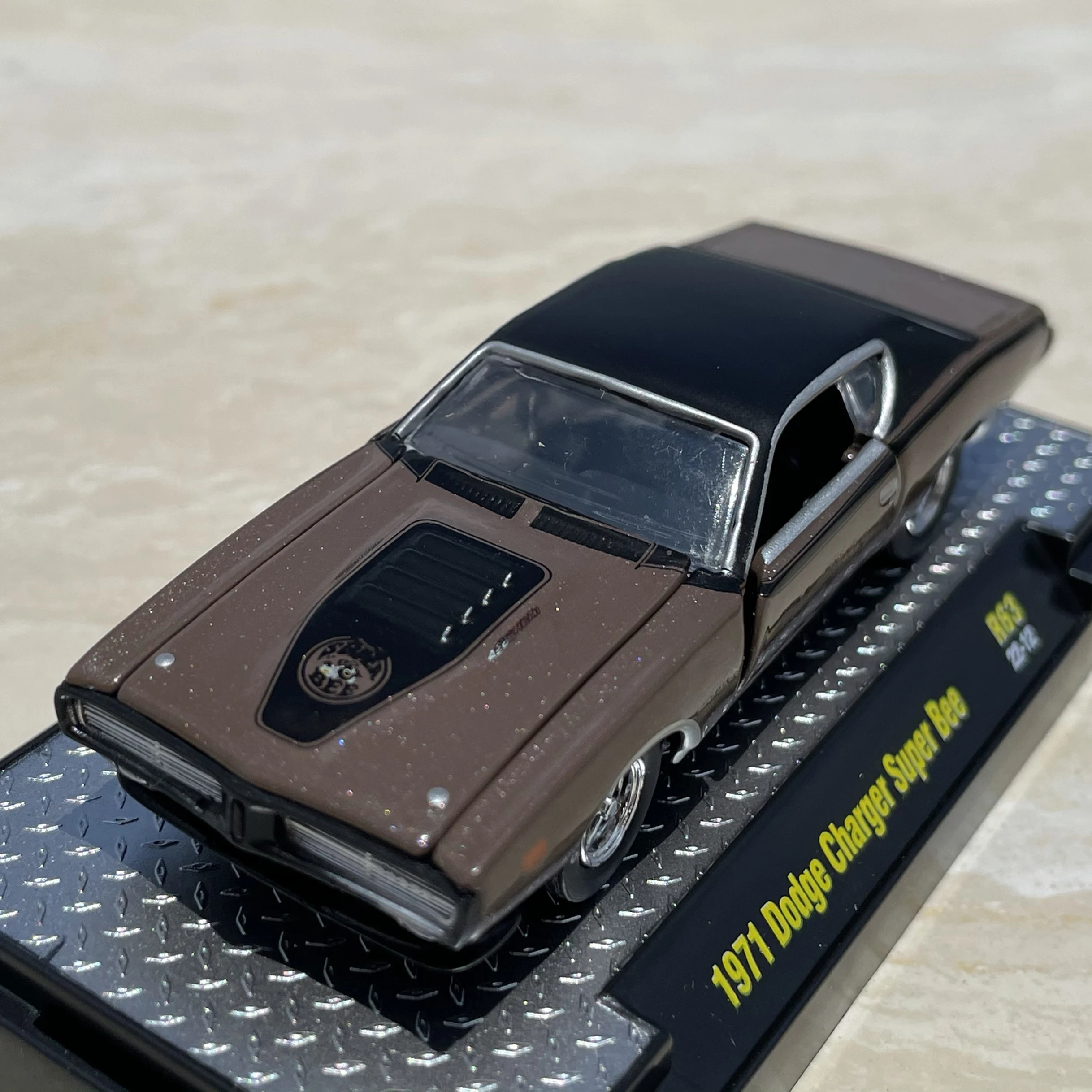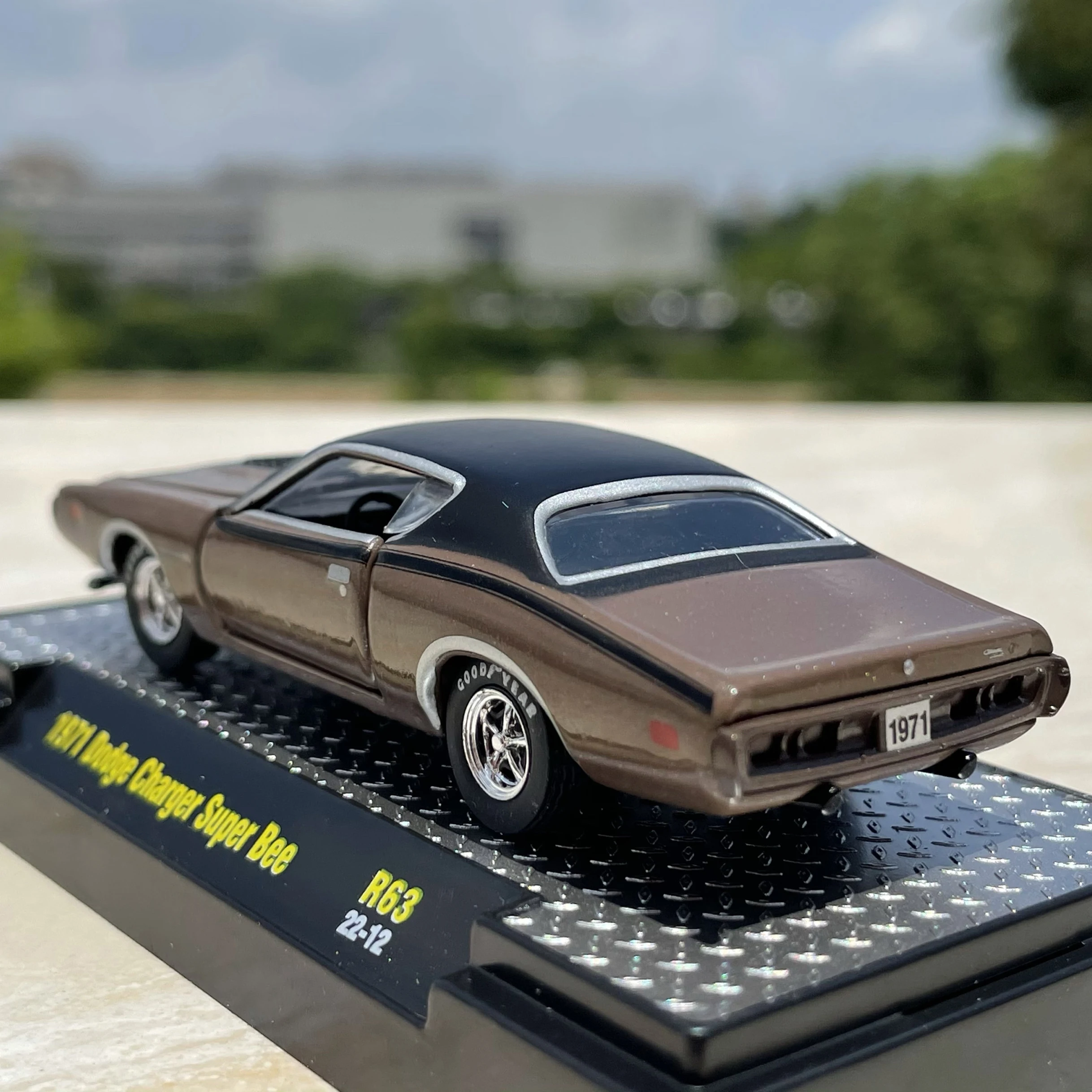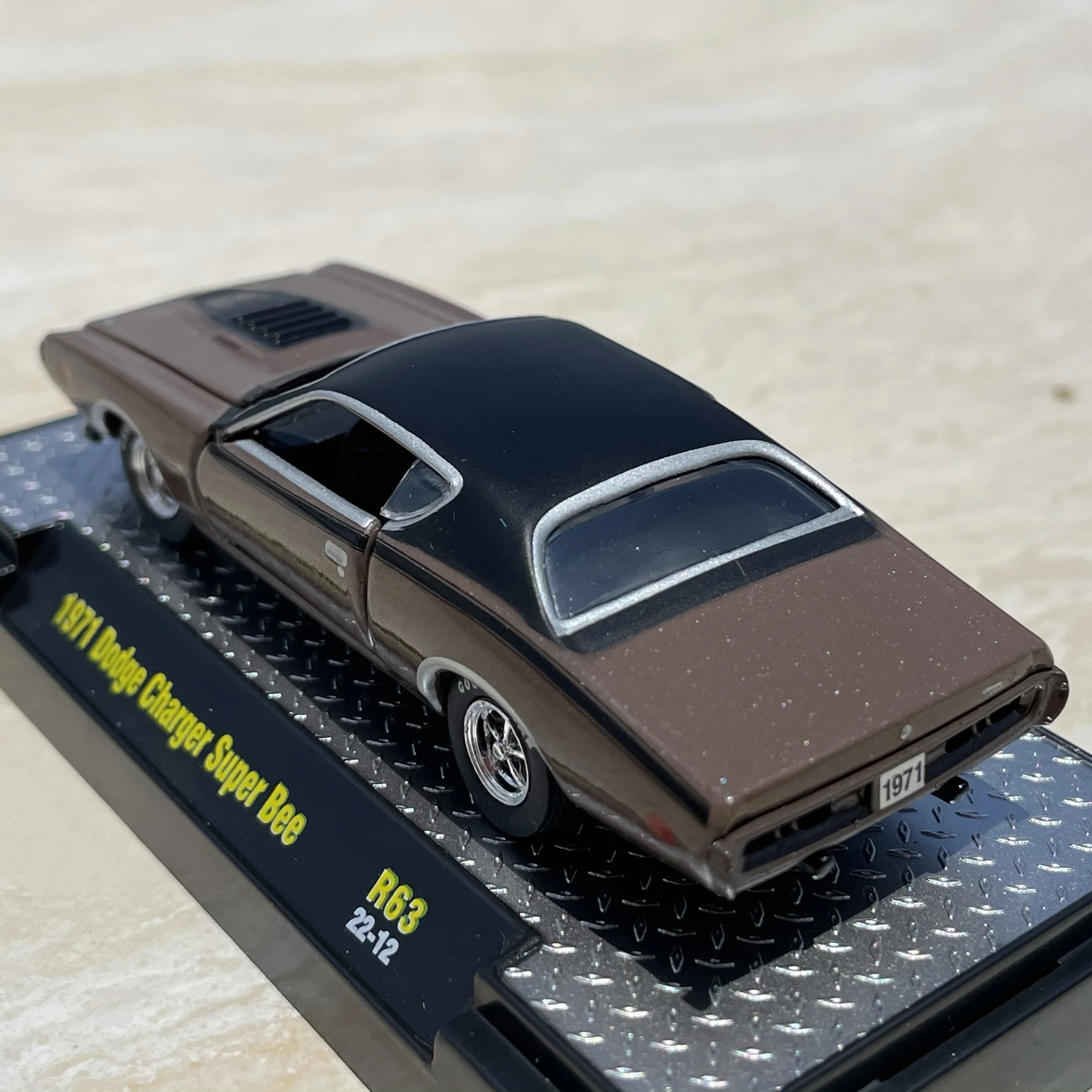Capture the essence of vintage muscle cars with this 1:64 scale diecast model of a 1971 Dodge Charger Super Bee. Crafted from alloy and ABS plastic using precise die-casting technology, this detailed collectible features a rich brown finish with a black Super Bee logo and “426 HEMI” decal on the hood. The model showcases a sleek long hood and fastback roofline, narrow rectangular headlights, chrome-spoked wheels with Goodyear tires, and small integrated side mirrors. Perfect for display or nostalgia collectors aged 14 and up, it offers an authentic vintage muscle car aesthetic with meticulous surface detailing and functional simplicity.