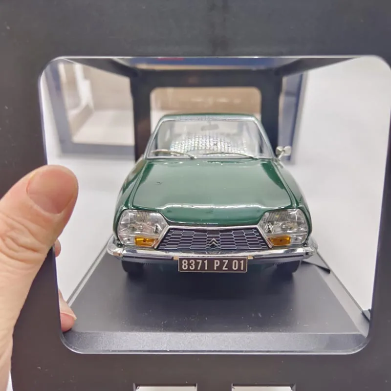 Immerse yourself in the charm of the early 1970s with this meticulously crafted 1/18 scale diecast model of the Citroen GS from 1972. Measuring approximately 23 cm long, 9 cm wide, and 8 cm high, this collector’s piece captures the sleek, aerodynamic design synonymous with vintage elegance. Its glossy dark green finish reflects expert craftsmanship, showcasing smooth surfaces and tiny chrome accents. The model’s finely detailed body, including contour lines and realistic wheels with silver hubcaps, makes it an ideal display item. Designed for adult enthusiasts, it offers a static ornament that enhances any collector’s collection or vintage decor. Own a piece of automotive history today and elevate your display with this timeless miniature.