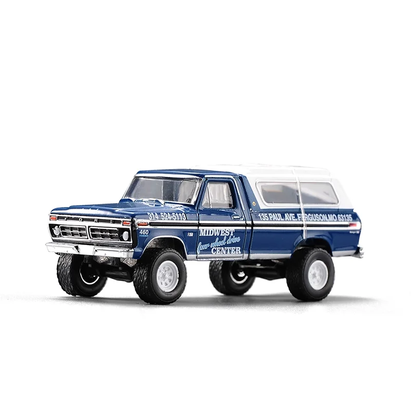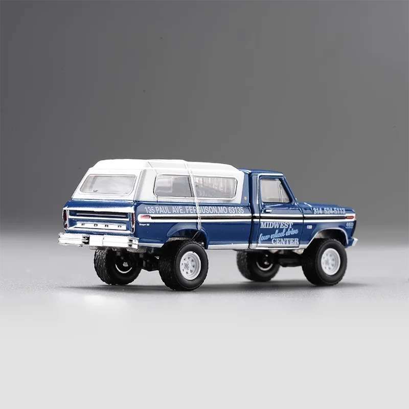 - Vivid, glossy deep blue paintwork with tiny decal details like “MIDWEST four wheel drive CENTER” branding on the doors.