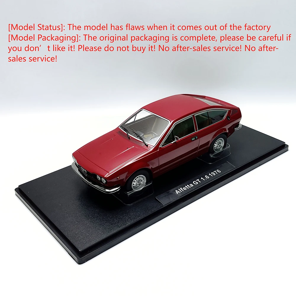 Step into the timeless style of the 1976 Alfa Romeo Alfetta Gt 1.6 with this meticulously crafted 1:18 scale die-cast model. Featuring a sleek, angular coupe design, this model captures the essence of a classic era with its deep glossy red finish and vibrant rainbow decal stripe that runs along the side, adding a lively touch. The detailed front headlights, grille, and side mirrors, paired with intricately designed multi-spoke rims fitted with realistic rubber tires, bring authenticity to your collection. The clear windows reveal a minimalistic dashboard and seats, emphasizing its vintage charm. A perfect decorative item for enthusiasts, this static replica offers a high-quality tribute to an iconic automobile, inspiring admiration and nostalgia.
