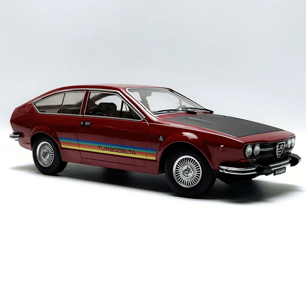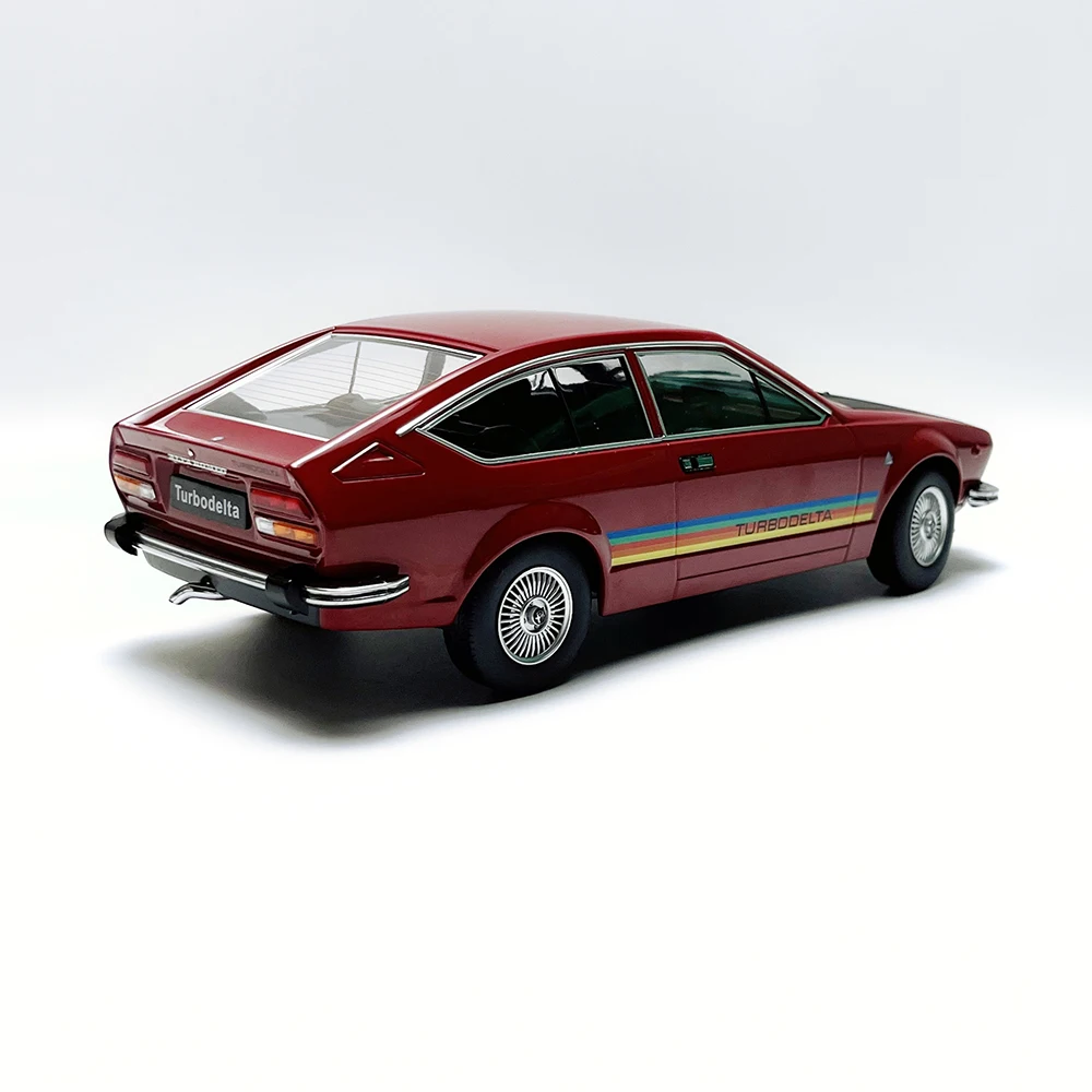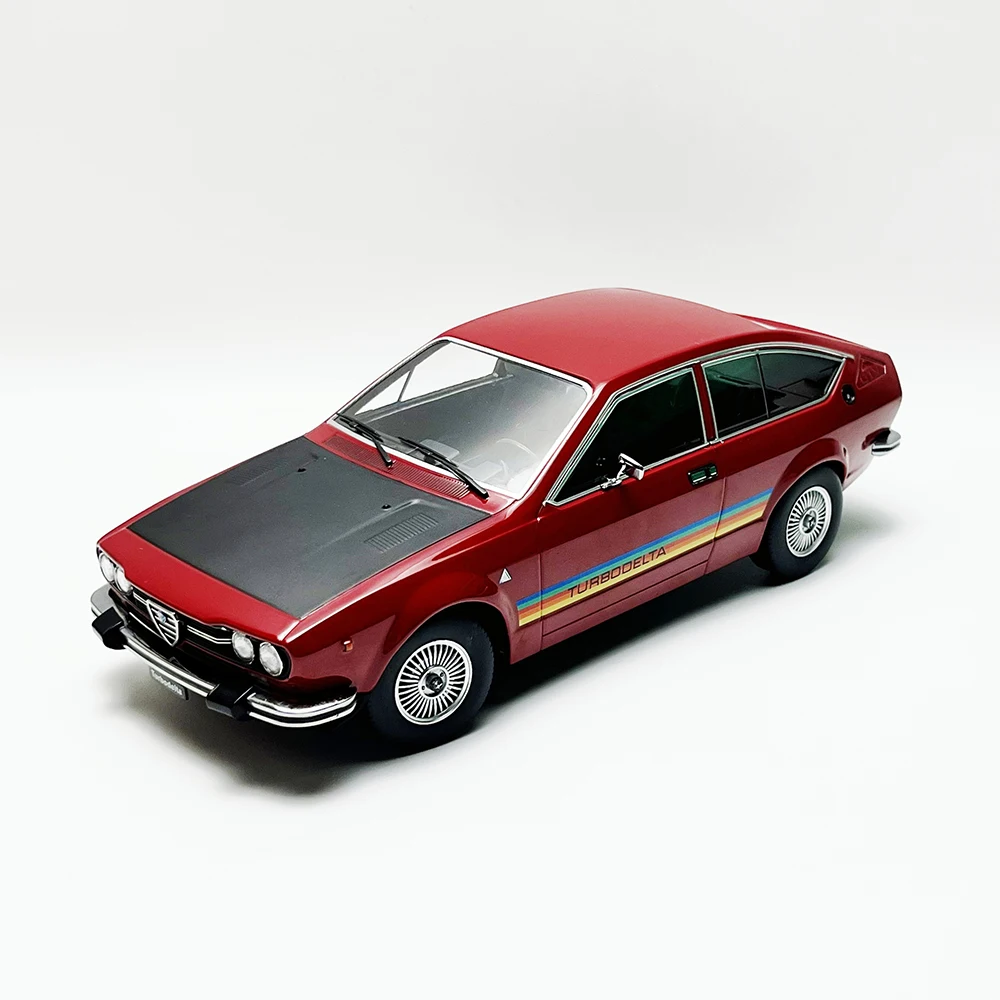 - Finished in a deep glossy red color with a vibrant rainbow stripe decal displaying “TURBODELTA,” capturing the lively spirit of the original 1976 model.