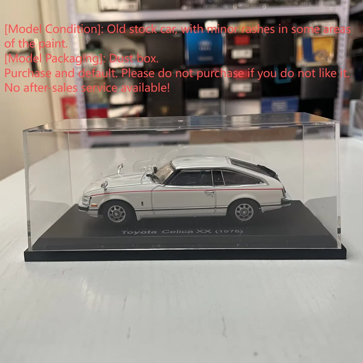 This detailed die-cast alloy static model accurately reproduces the 1978 Toyota Celica XX MA46 in 1:43 scale, showcasing a glossy white finish accented by a vibrant red stripe along the sides. Crafted from alloy with plastic and rubber components, the model features precise details such as a grille, rectangular headlamps, chrome-finished side mirrors, and detailed wheel rims with rubber tires. Designed solely for collection, display, and appreciation, it comes in a dust box and exhibits minor paint flaws consistent with its status as old stock. Perfect for enthusiasts aged 14 and above, this meticulously crafted model offers a classic and refined aesthetic that captures the essence of the original vehicle.