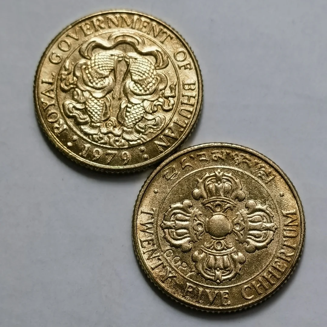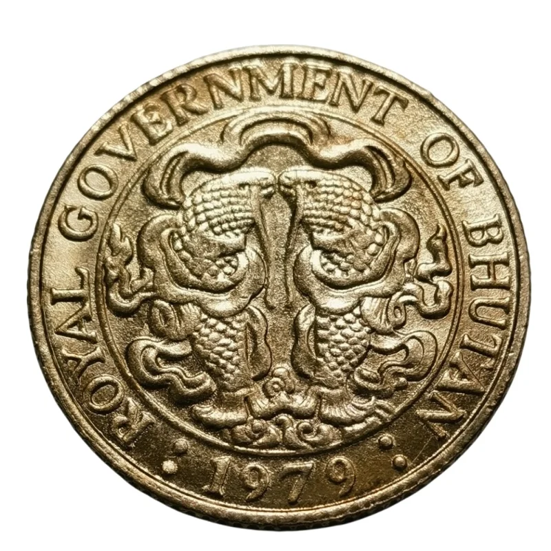 - The coin features inscriptions “GOVERNMENT OF BHUTAN” at the top and “1979” at the bottom, faithfully reproducing historical elements without using precious metals.