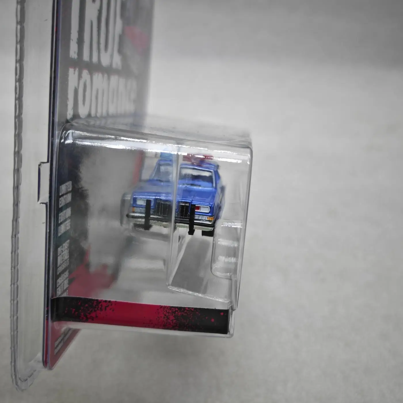 The GreenLight 1:64 1982 Plymouth Gran Fury diecast model is a striking representation of classic automotive nostalgia. Meticulously crafted in a vibrant blue with detailed paintwork, this model features a roof-mounted red light bar, distinguishing it as a police vehicle. The side graphics, showcasing “POLICE” and a badge emblem, enhance its authenticity, making it a perfect addition to any collector's showcase. The timeless black wheels complement the car's vintage design, capturing the essence of the era perfectly. Ideal for decorative purposes, this piece is a must-have for enthusiasts who appreciate the intricate details of iconic vehicles.
