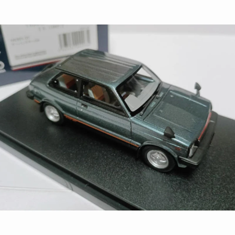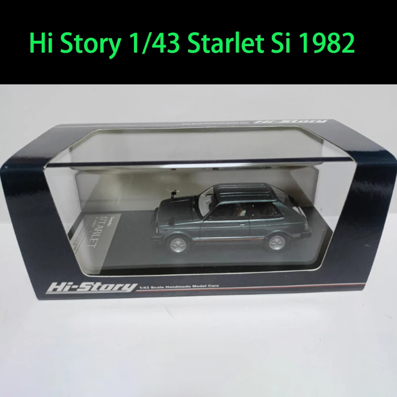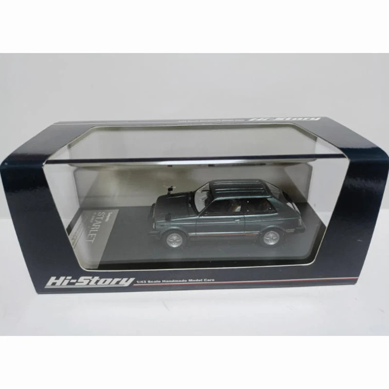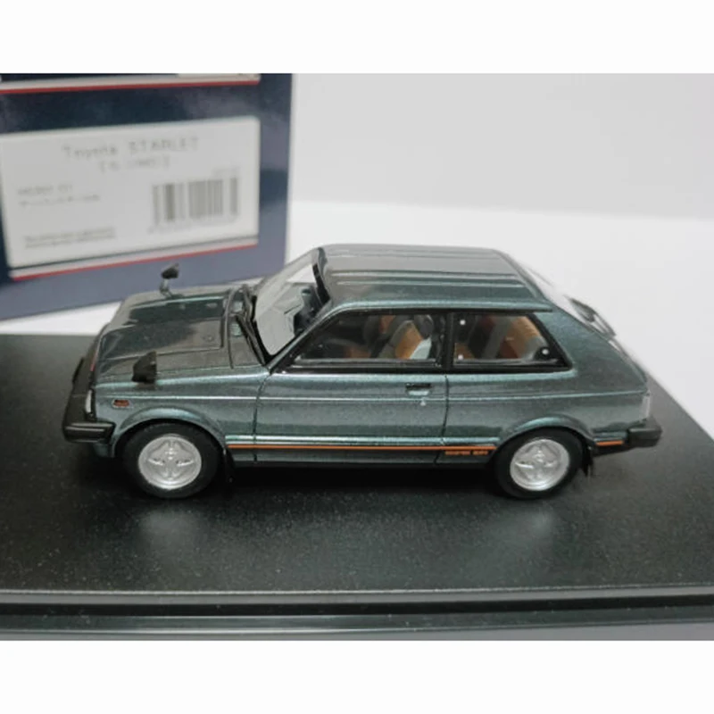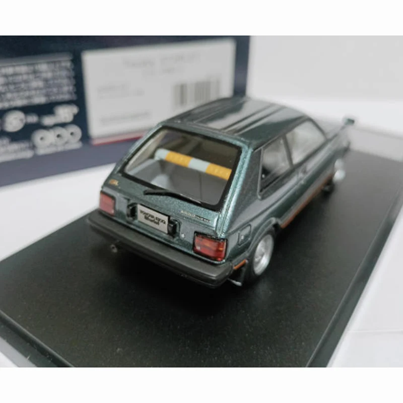 The 1/43 scale diecast model of the 1982 Toyota Starlet Si is a stunning collectible crafted from high-quality resin, featuring a glossy dark green exterior. Its detailed design includes a black grille with horizontal slats, rounded headlights, and a clear windshield showing a brown dashboard interior. The model showcases well-defined body lines, small side mirrors, and a sporty silhouette, embodying the classic 1980s aesthetic. It is mounted on four black tires with simple tread patterns and silver rims, making it a perfect addition for display, collection, or as an elegant gift. This model is purely ornamental and does not require batteries.