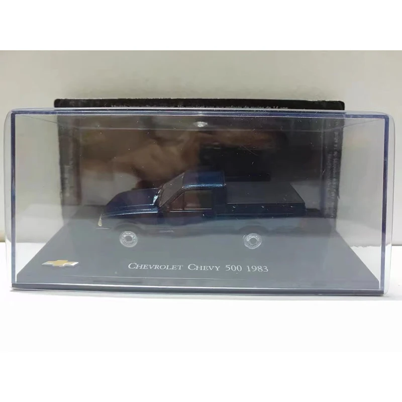 Imagine adding a touch of classic elegance to your collection with this detailed miniature of the Chevrolet Chevy 500 from 1983. Crafted with precision, it boasts a vibrant, metallic dark blue finish that gleams under light, giving it an eye-catching appeal. Its smooth surface highlights precisely rendered panel lines, a rectangular grille with horizontal slats, and contrasting black bumper, creating a bold look. The clear windows reveal a subtle, detailed interior, while the black wheels with shiny silver hubcaps spin smoothly on rotating axles. Small circular indentations on the side panels add realistic texture. This model exudes a nostalgic charm and a polished, aesthetic appeal—an ideal display piece for enthusiasts and collectors alike.