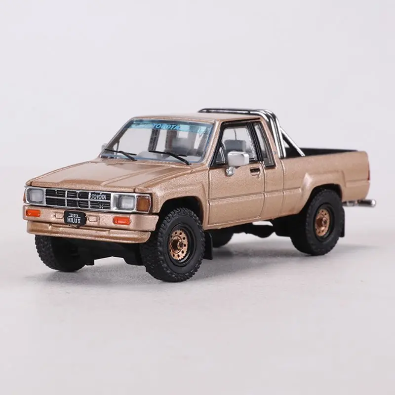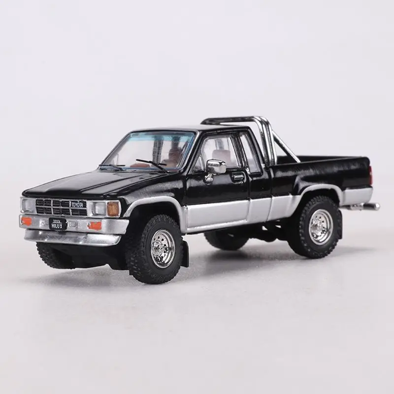Experience the sleek realism of the 1985 Toyota Hilux SR5 Xtra Cab with this meticulously crafted 1:64 scale die-cast metal model. Featuring a durable alloy construction, it is available in striking colors: golden, silver-black, black, and blue. The model boasts authentic design details, including a rectangular grille, detailed headlights, side mirrors, and silver-colored rims with intricate treaded tires. Its minimalist yet precise craftsmanship captures the iconic proportions of the original vehicle, making it a perfect collectible or gift for enthusiasts. Non-electronic and suitable for ages 18+, it combines quality, authenticity, and elegance in a compact, eye-catching display piece.