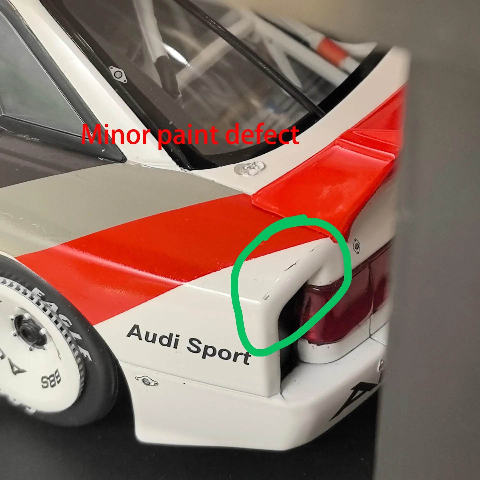 - The transparent windows showcase a detailed racing interior, including a racing seat with a red harness and subtle surface details like rivets, vents, and antennas for added realism.