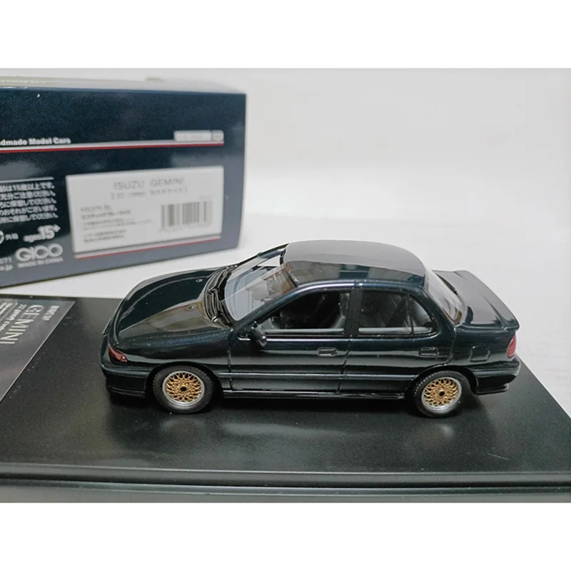 Experience the elegance of this highly detailed 1/43 scale resin model car of the 1990 Isuzu Gemini ZZ. The glossy black finish highlights its smooth, realistic body contours, closely replicating the original vehicle’s stylish design. Small, precise details such as the clear headlights, amber turn signals, and finely crafted side mirrors bring authenticity and sophistication. The transparent windshield and side windows reveal a meticulously detailed light-colored interior, emphasizing quality craftsmanship. The striking gold multi-spoke rims contrast beautifully with the black body, adding an element of visual appeal. This miniature is perfect for display, collection, or as an elegant ornament, providing a sense of connection to the classic automotive era with its refined aesthetics and realism.