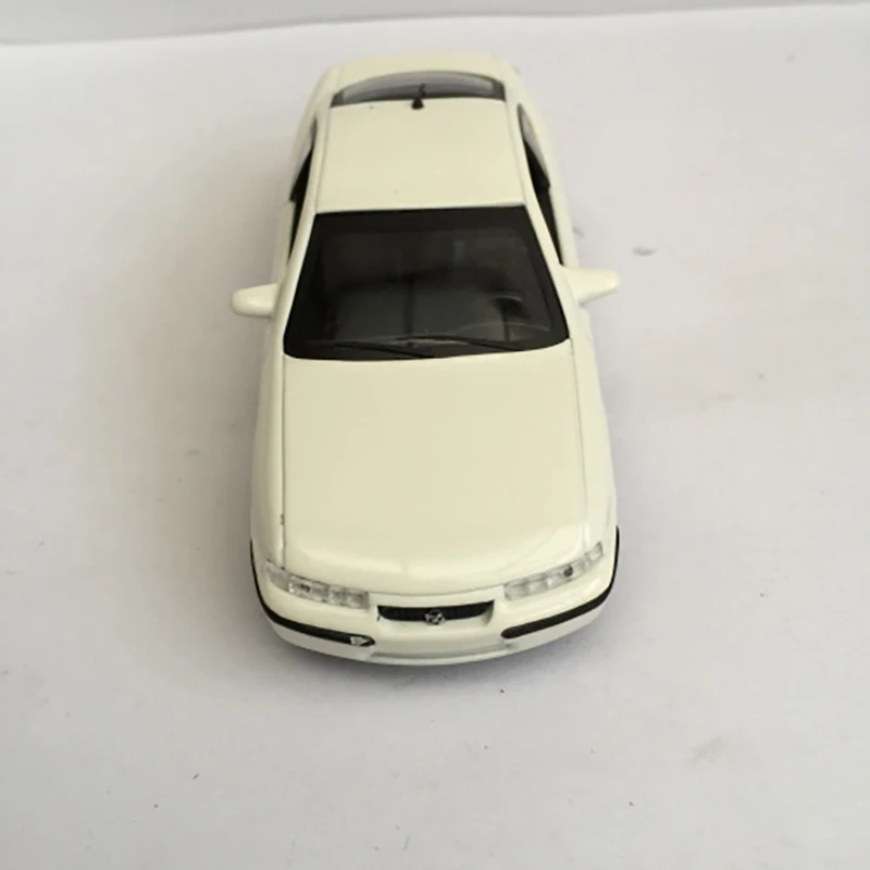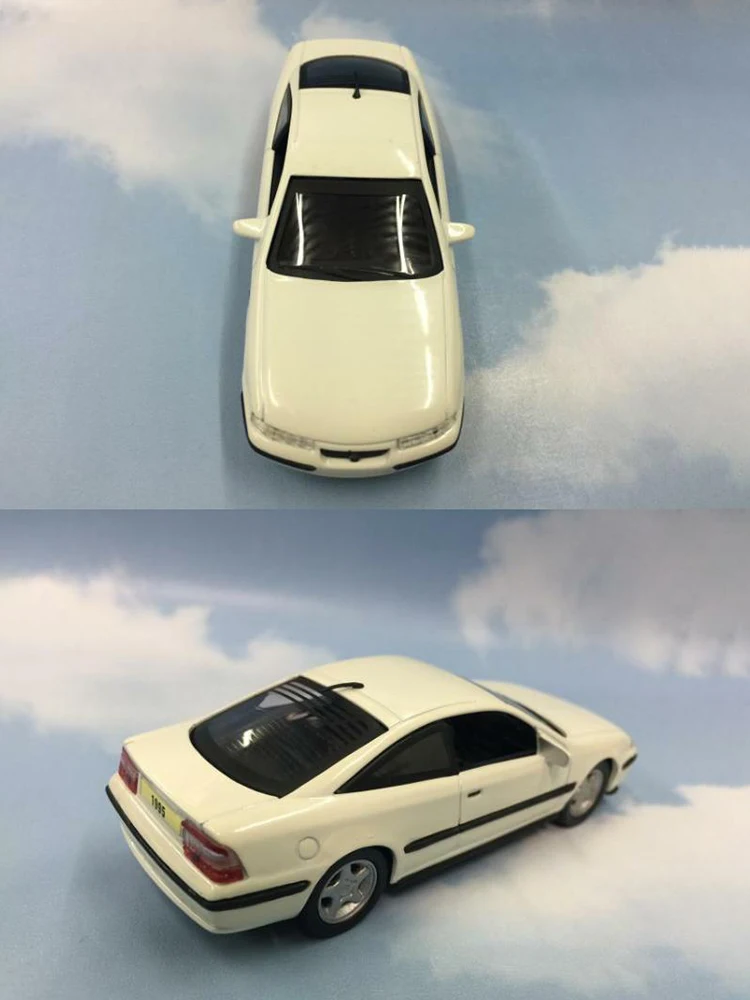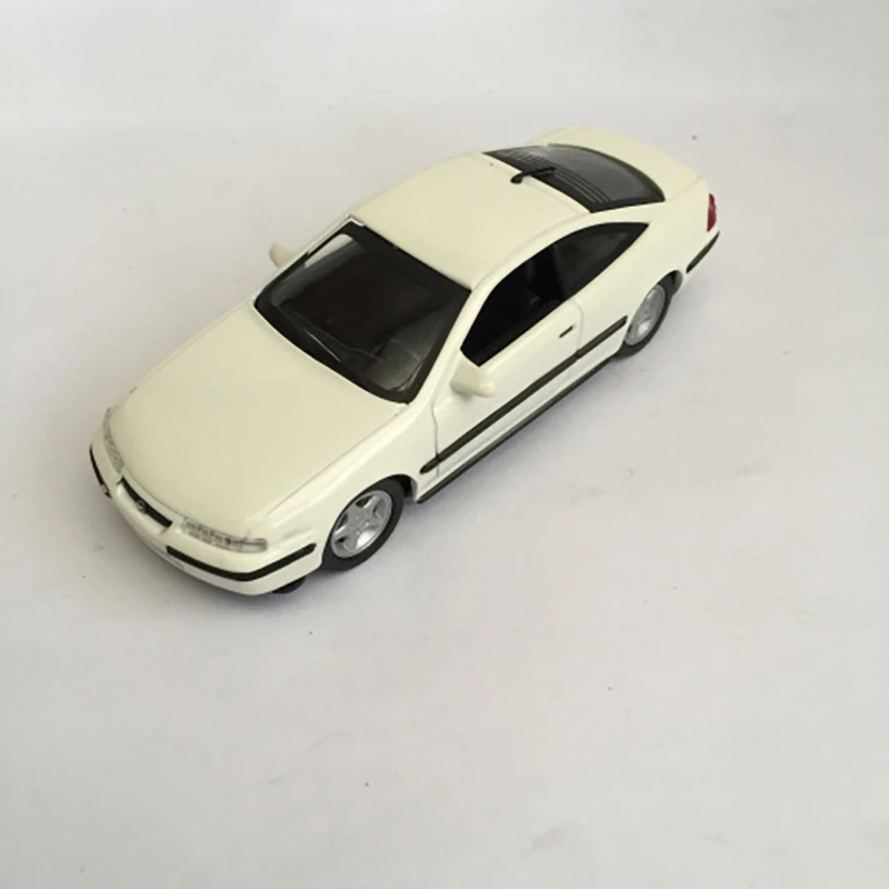 This 1:43 scale die-cast model of a 1995 Opel captures the sleek, aerodynamic design with a white body accented by black details. Measuring approximately 10 cm in length, 3.5 cm in width, and 3 cm in height, it features a black sunroof, realistic narrow headlights, subtle grille, white side mirrors, minimalistic door handles, tinted windows, and detailed silver multi-spoke rims with textured black tires. Crafted from alloy, this collectible toy offers a refined, authentic look ideal for display, decoration, or gifting to enthusiasts. Its precise proportions and intricate detailing make it a standout addition to any car model collection.