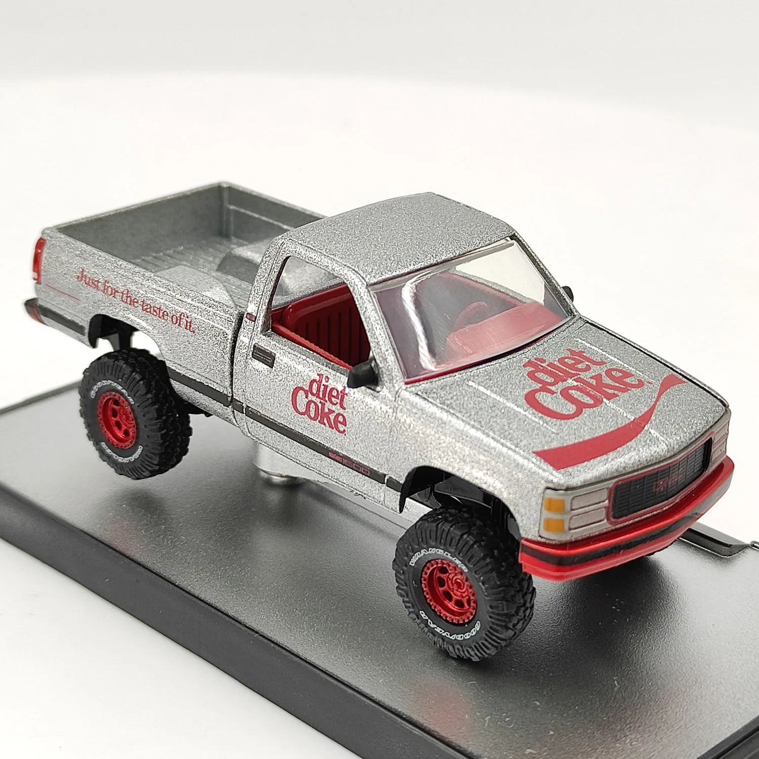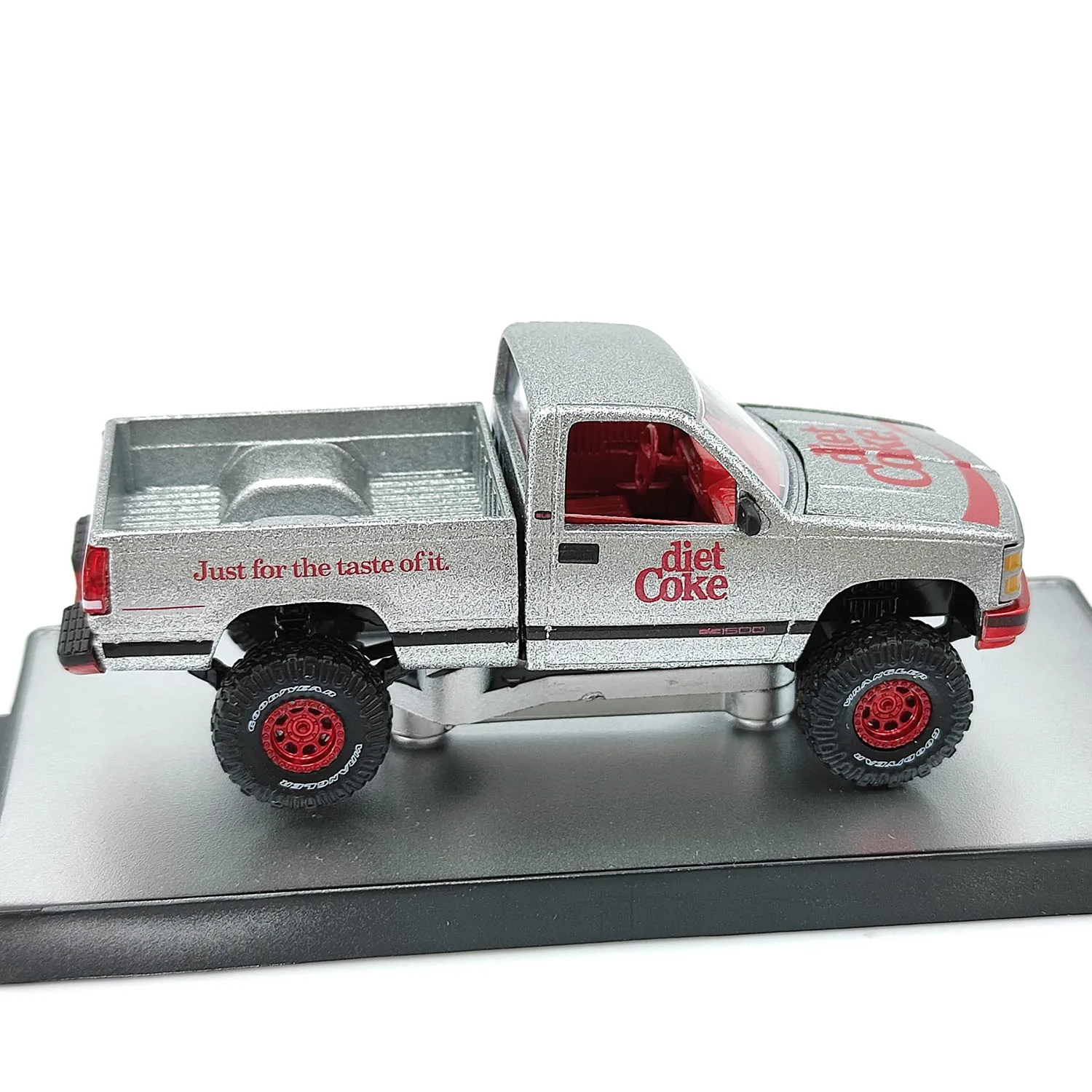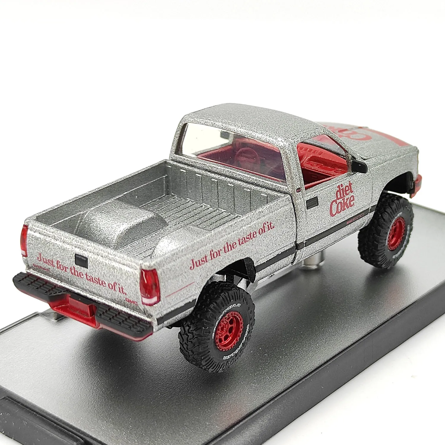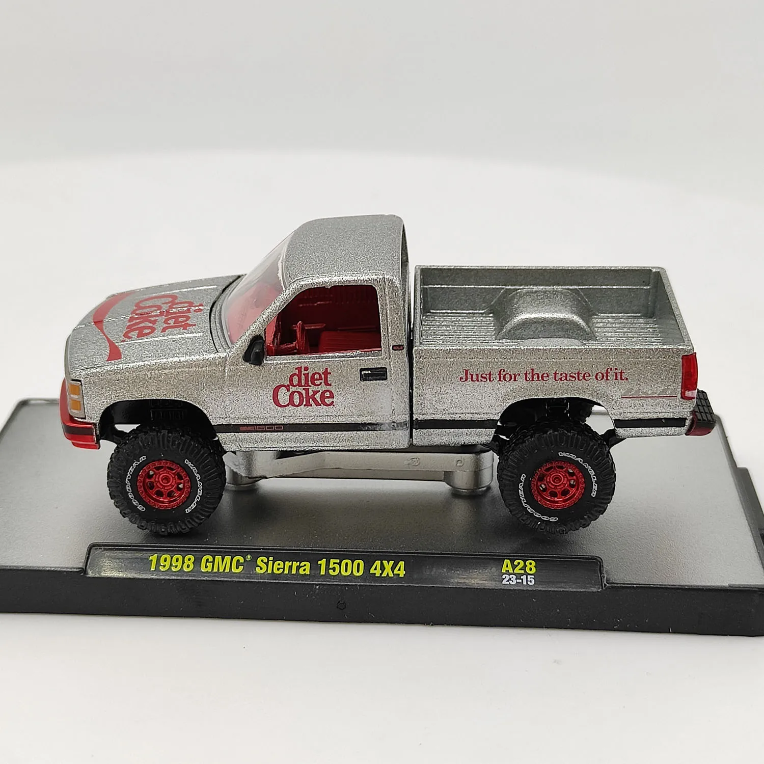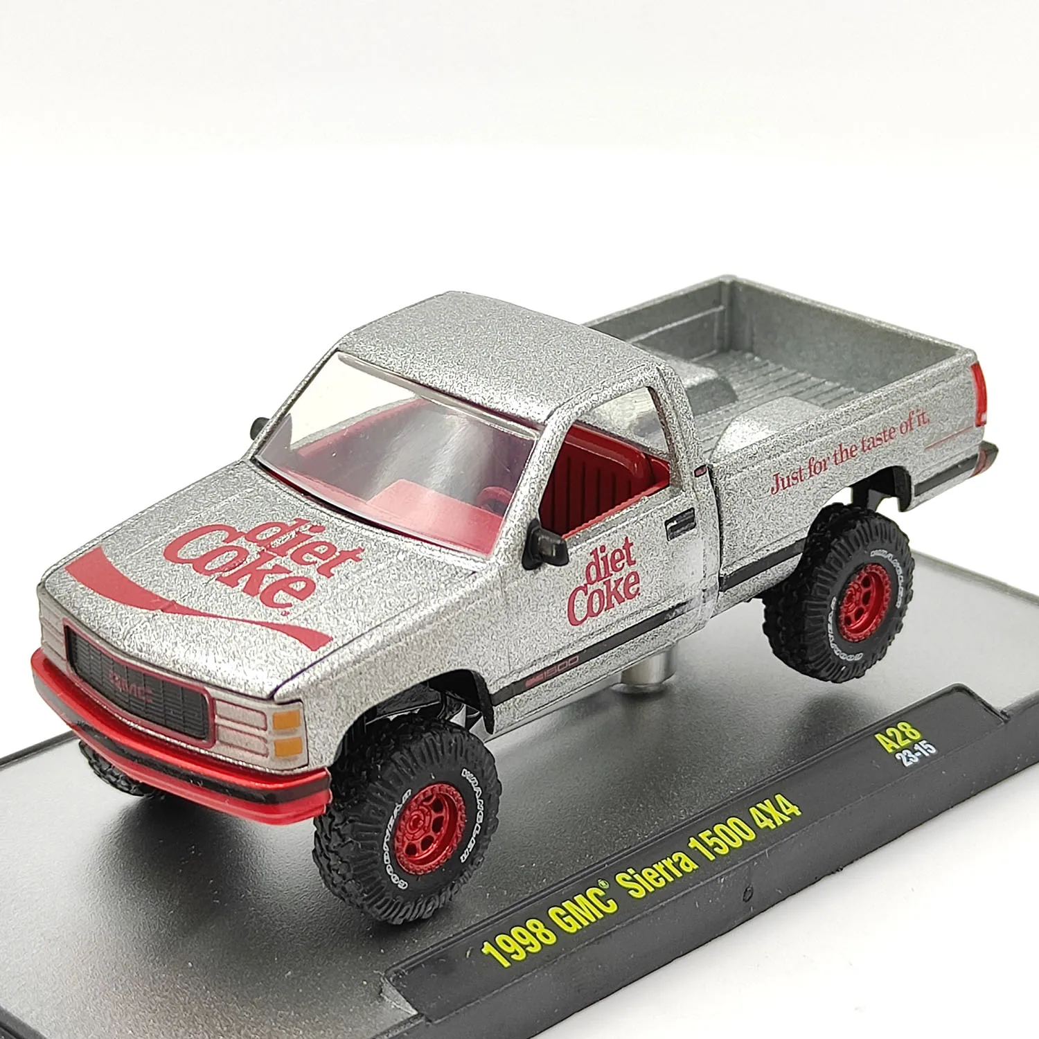 Step into the world of collectors with this highly detailed diecast model of the 1998 GMC Sierra 1500 4×4 truck, scaled perfectly at 1:64. Crafted with precision from alloy and ABS plastic, this miniature captures the rugged yet sleek aesthetic of the original vehicle. Its metallic silver finish offers a shiny, reflective surface that enhances its realism. The model features authentic details, such as a prominent front grille, sharply defined headlights, realistic wheel arches, door handles, and bed accents. The rugged off-road tires with deep treads and red-accented rims add to the authenticity. The transparent windows reveal a subtle red interior, completing its striking visual contrast. Whether displayed on a desk or shelf, this model promises a sophisticated touch to any collection.