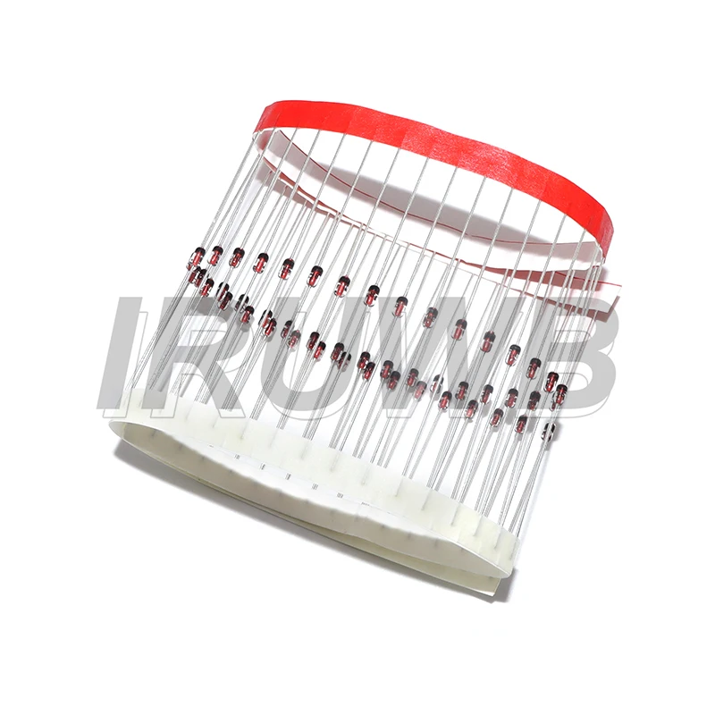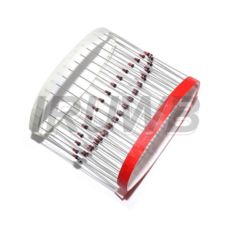 - Package includes 50 high-quality diodes, each with straight, silver metallic leads extending downward, suitable for through-hole mounting and secure connections.