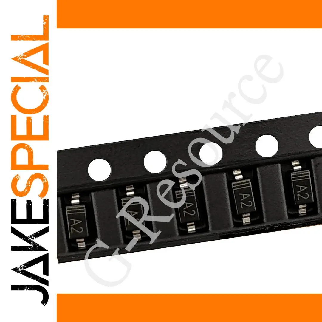 This set of 100 high-quality surface-mount switching diodes includes model 1N4148W in SOD-123 and 1206 packages, ideal for fast switching applications. Each diode features a compact, rectangular SMD design with a matte black finish and metallic terminals, marked with “A2” for easy identification. Perfect for electronic projects and manufacturing, these diodes from Takin Chip provide reliable performance, with precise fit and uniform appearance. Their sleek, minimalist design ensures seamless integration onto circuit boards, making them an essential component for professional electronic assembly and repair. Trust in their quality to enhance your circuitry with efficiency and durability.