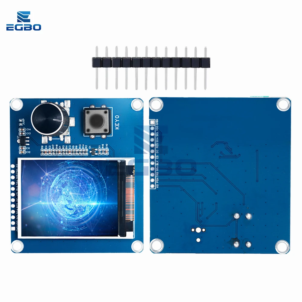 Imagine upgrading your project with this modern, professional-looking 2.0-inch TFT display combined with a precision EC11 rotary encoder. Its vibrant, high-resolution screen features a glowing blue globe surrounded by intricate network lines, offering a futuristic visual appeal. The glossy display sits flush on a clean, blue circuit board, enhanced by a ridged black rotary encoder knob for tactile control and a small push-button for easy interaction. With neatly arranged electronic components and gold-plated pins, this module exudes quality and craftsmanship. Designed for seamless integration, it will elevate your electronics setup, whether for a dashboard, control interface, or data visualization project. Experience innovation and style in one compact module that promises reliability and aesthetic appeal.