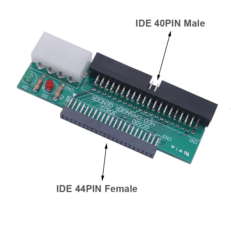 This green 2.5-inch to 3.5-inch IDE HDD converter card from OULLX allows you to connect a 2.5-inch IDE 44-pin female hard disk to a desktop PC’s 3.5-inch IDE 40-pin interface. Featuring an LED indicator light, a D-shaped 4-pin power port, and no driver installation required, it facilitates easy data transfer, backup, system recovery, and OS installation. The compact, organized layout ensures correct connection with visual indication for alignment by matching the drive’s front face with the converter. Ideal for transforming laptop IDE hard disks into desktop drives for versatile data management and system operations.