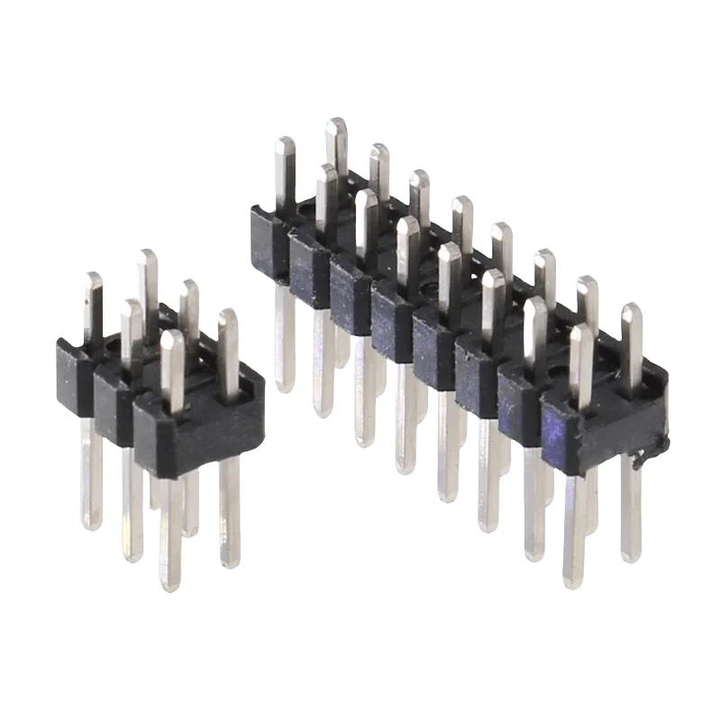 Imagine your electronic projects perfectly connected with this high-quality, double-row male PCB connector strip. Its sleek black plastic housing complements the shiny, silver-plated pins, creating a professional appearance. The precise, evenly spaced pins ensure smooth, secure connections every time. Available in various configurations, from 2×2 to 2×40 pins, it adapts easily to different circuit needs. The compact design minimizes space, making your device neater and more efficient. Whether you’re designing a prototype or final product, this connector’s durability and ease of use enhance your workflow. You’ll appreciate how effortlessly it integrates into your PCBs, providing stable electrical contact. This connector is your go-to for durable, high-performance electronic connections.