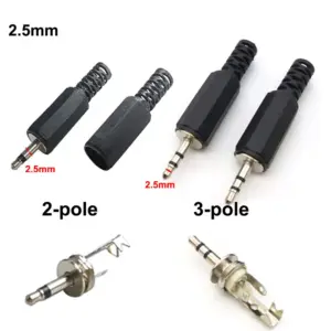 - Includes 5 or 10 high-quality 2.5mm male connectors, available in both mono (2-pole) and stereo (3-pole) configurations for versatile headphone compatibility.
