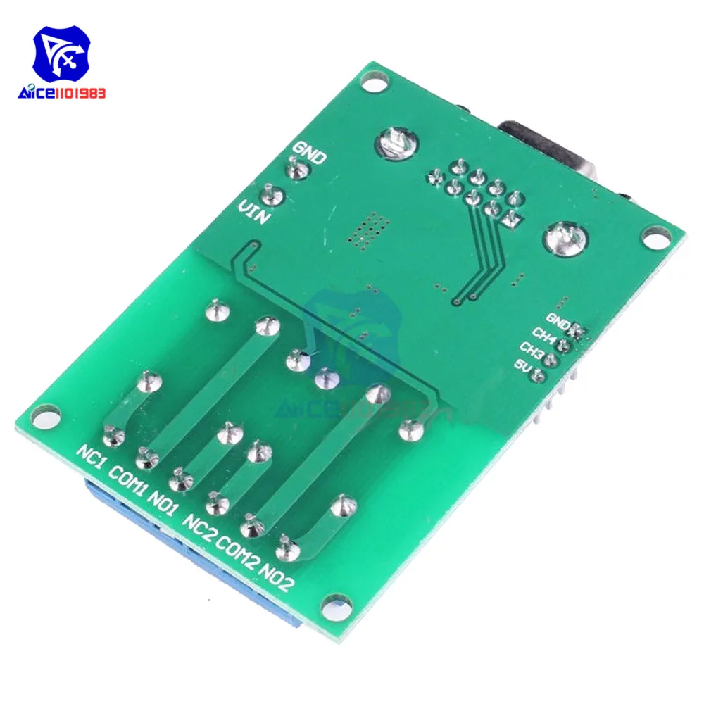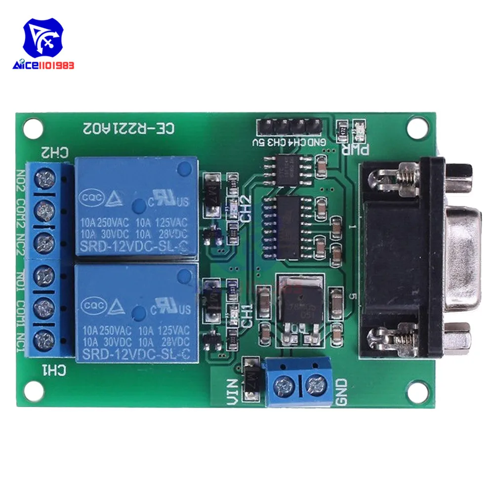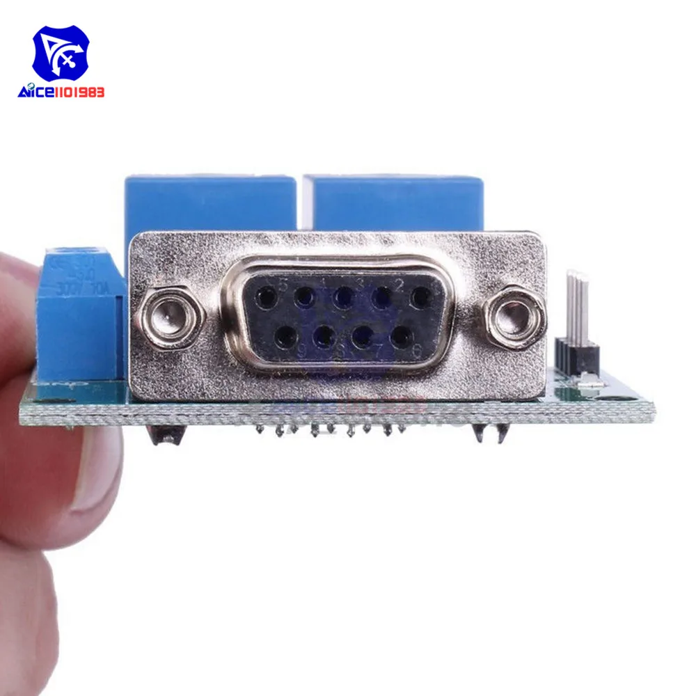 Imagine streamlining your automation tasks with this sleek and reliable relay module. Designed for seamless integration, it features a vibrant green PCB base with precisely etched copper traces and two prominent blue rectangular relays, accented by silver terminals that exude industrial sophistication. The module’s vivid blue terminal screw connectors ensure secure wiring, complementing the sturdy silver DB9 port for RS232 communication. Compact and sturdy with mounting holes, this module fits perfectly into custom enclosures or systems, offering a modern technical aesthetic. Its control capabilities include on/off switching, self-locking, and micro-motion functionality, all accessible via the computer terminal. This setup is versatile, supporting DC voltages of 5V and 12V, with extensive temperature resilience from -40°C to 85°C. It’s ideal for remote control, automation, and smart home projects that demand both style and precision.
