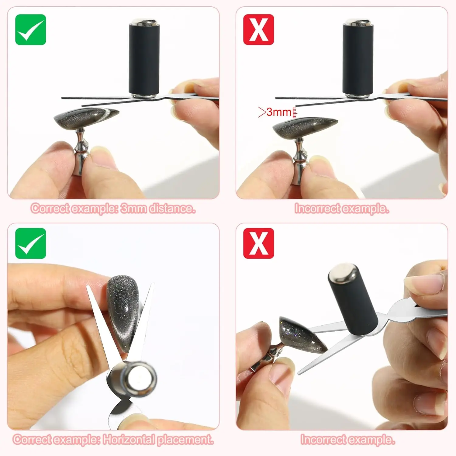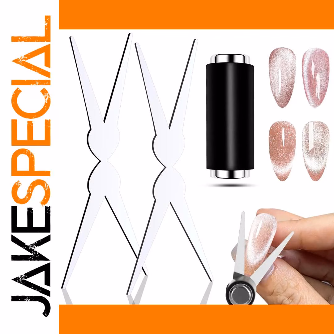 Achieve stunning cat-eye and French nail art with this 2-in-1 magnet set, featuring a powerful cylindrical magnet and an elegant dual-head, X-shaped French magnet tool with electroplated, rust-resistant finish. Available in black, silver, and silver 2-piece options, it allows for creating wide cat-eye lines, side-glow effects, and French tips known for their captivating appearance. Easy to use—simply position the magnet approximately 3mm from the nail surface for 3 seconds—you’ll get a professional-quality result. Suitable for DIY enthusiasts, salons, and professional nail artists, this compact, durable set provides versatile application, elevating your nail art skills with precision and style.