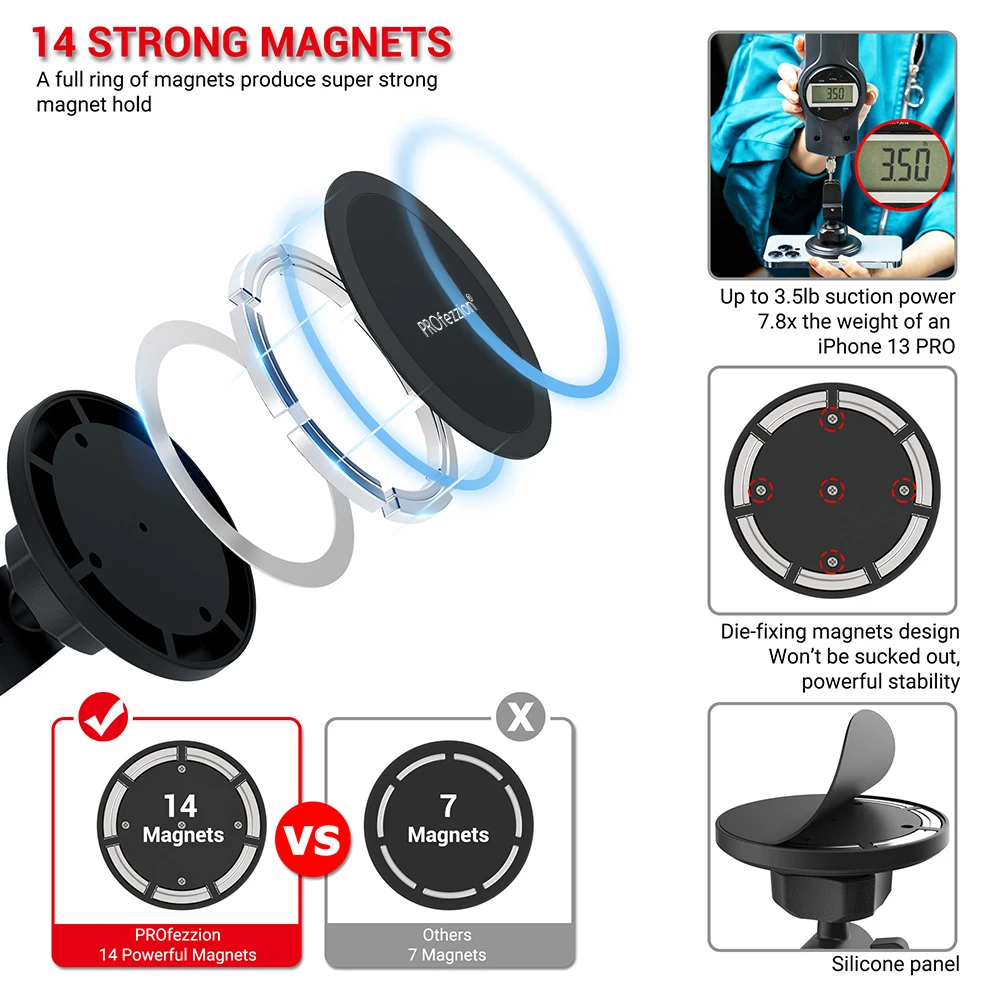 - Super strong magnets provide an unwavering grip on your device.