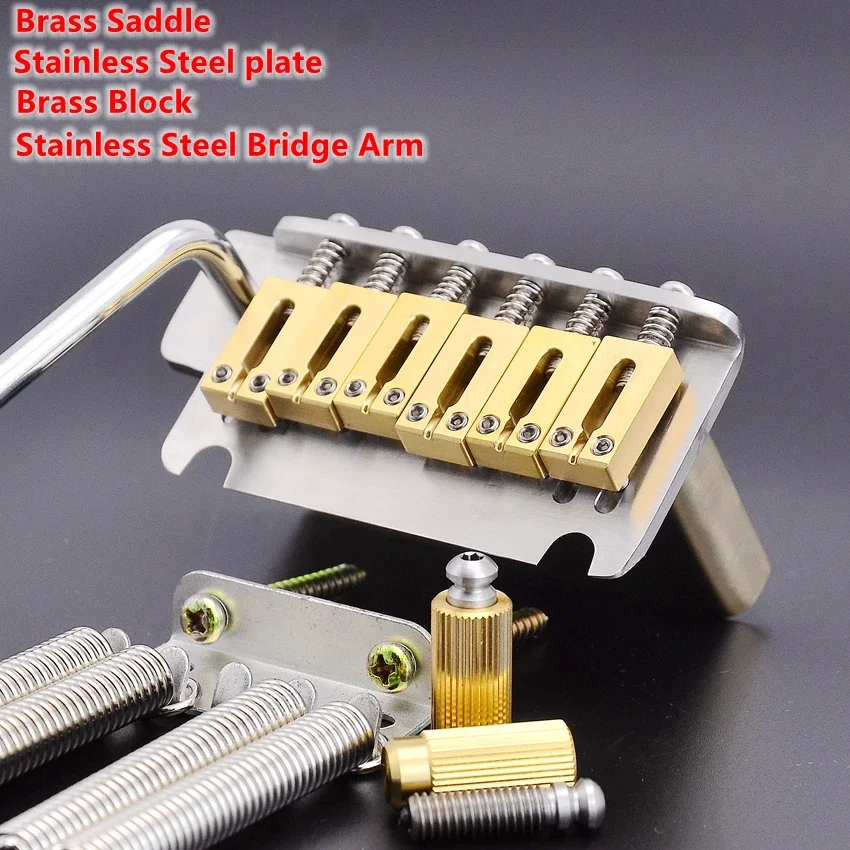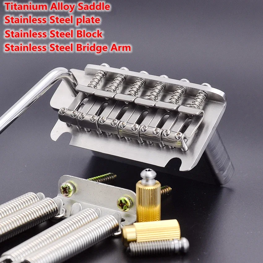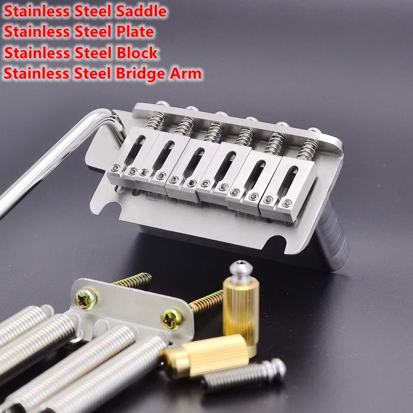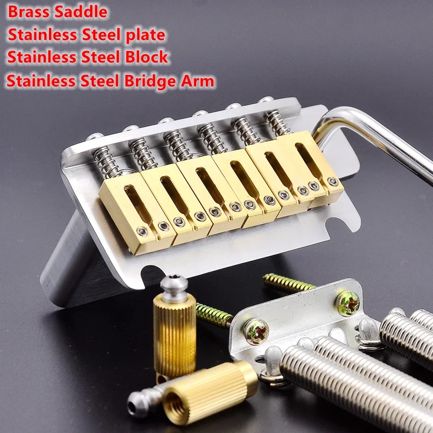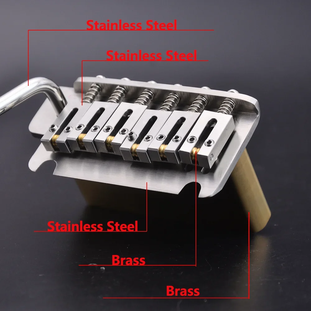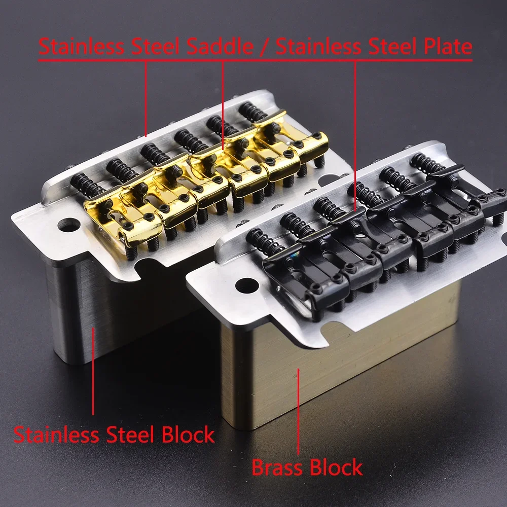 Enhance your guitar’s performance with the 2 Point 510 Style Tremolo System Bridge, model number 1367, meticulously crafted from stainless steel, brass, and titanium alloy for unparalleled durability. Weighing 505 grams, this robust bridge is designed for precision with its rectangular shape and rounded edges, featuring multiple saddles for effective string positioning and tuning stability. Available in various finishes, including polished stainless steel, matte black, and elegant gold, this tremolo system is compatible with an array of left-hand and right-hand kits, making it a versatile addition to your guitar setup. Experience superior playability and aesthetic appeal seamlessly combined.