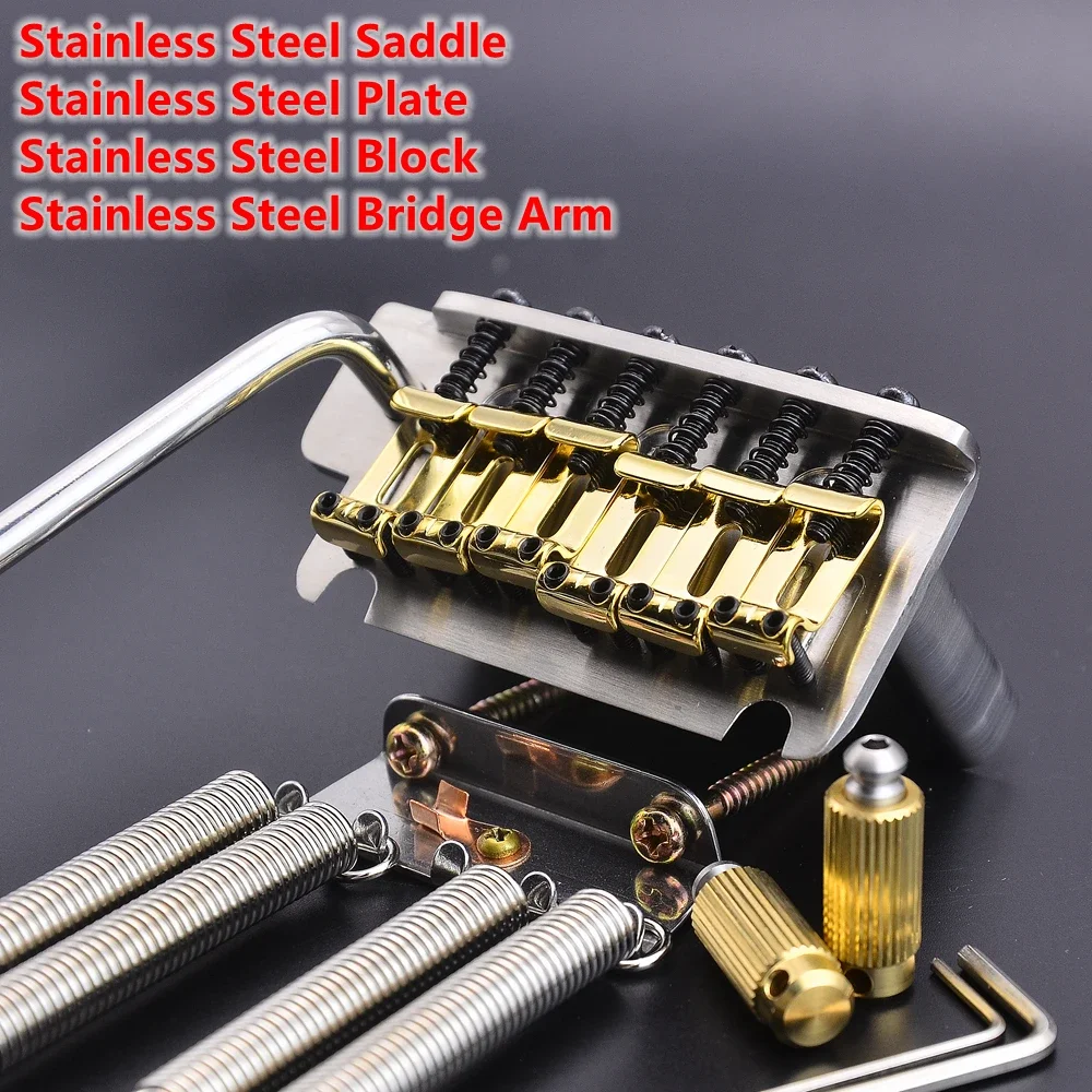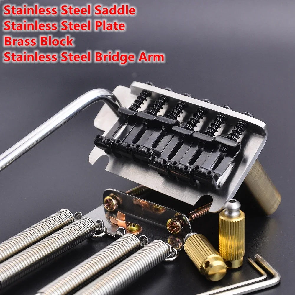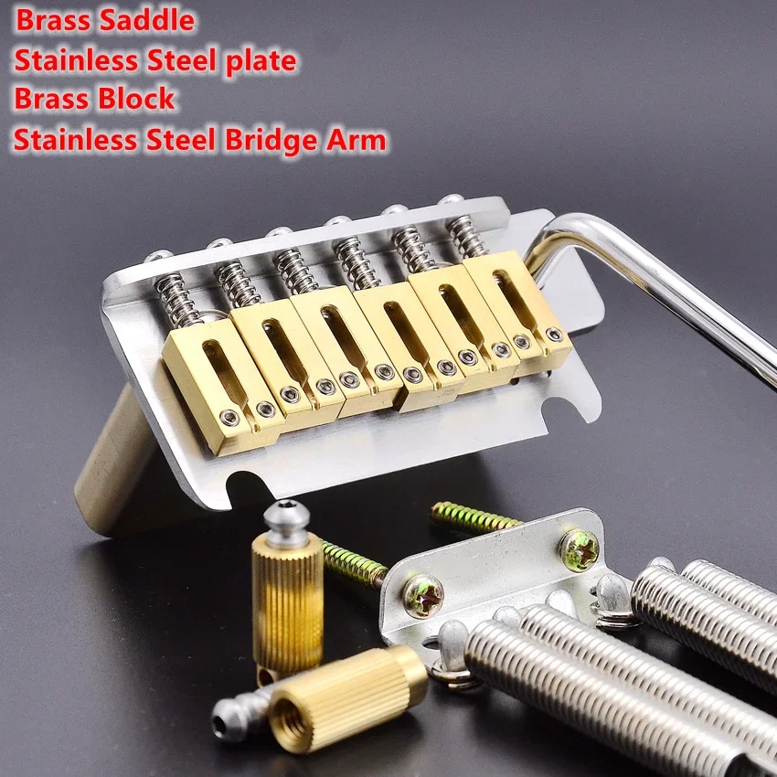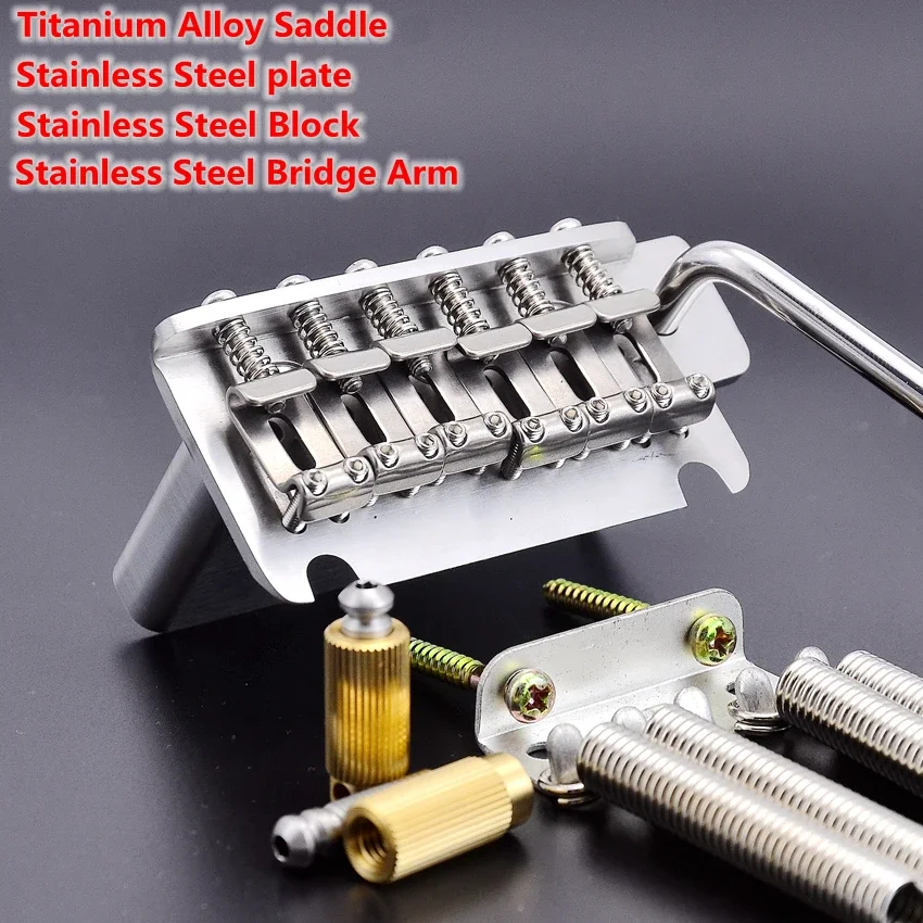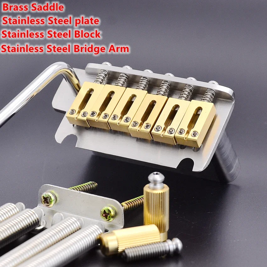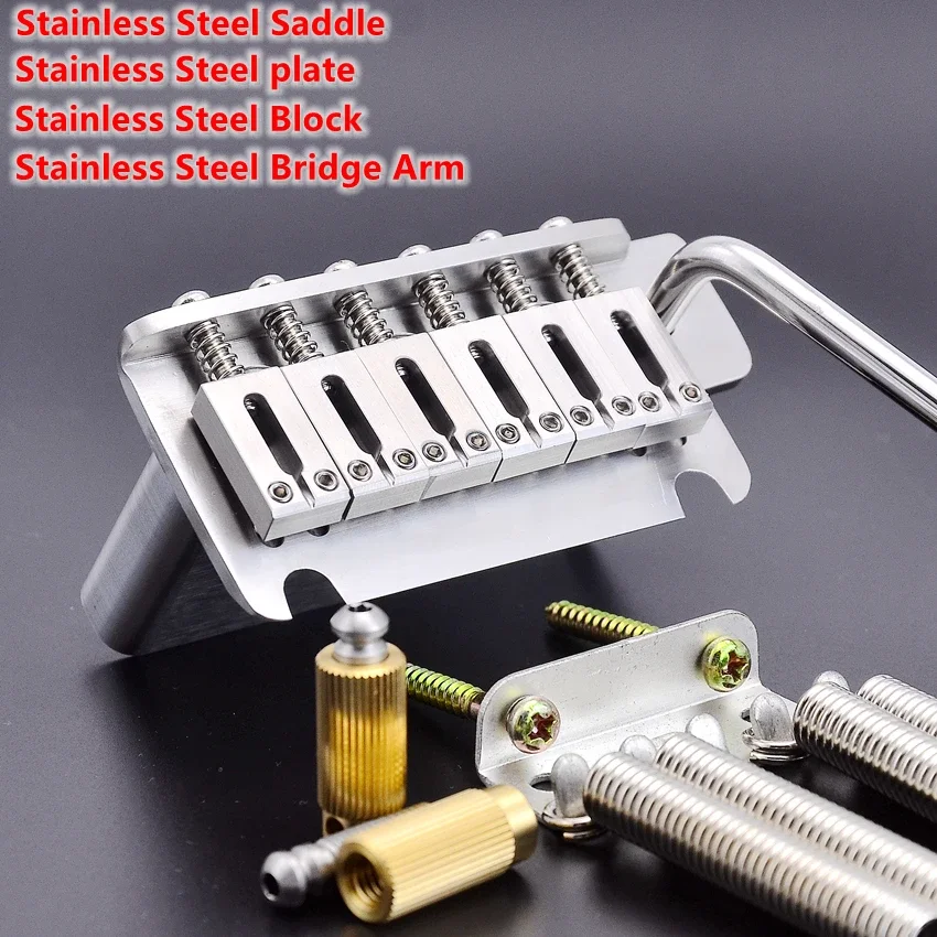 Enhance your guitar’s performance with the 2 Point 510 Style Tremolo System Bridge, model number 1367, meticulously crafted from stainless steel, brass, and titanium alloy for unparalleled durability. Weighing 505 grams, this robust bridge is designed for precision with its rectangular shape and rounded edges, featuring multiple saddles for effective string positioning and tuning stability. Available in various finishes, including polished stainless steel, matte black, and elegant gold, this tremolo system is compatible with an array of left-hand and right-hand kits, making it a versatile addition to your guitar setup. Experience superior playability and aesthetic appeal seamlessly combined.