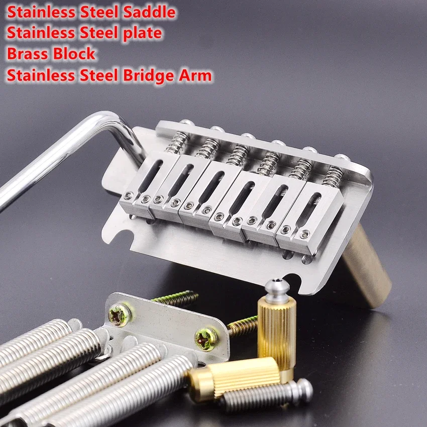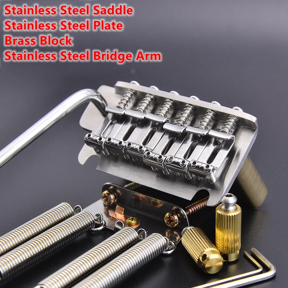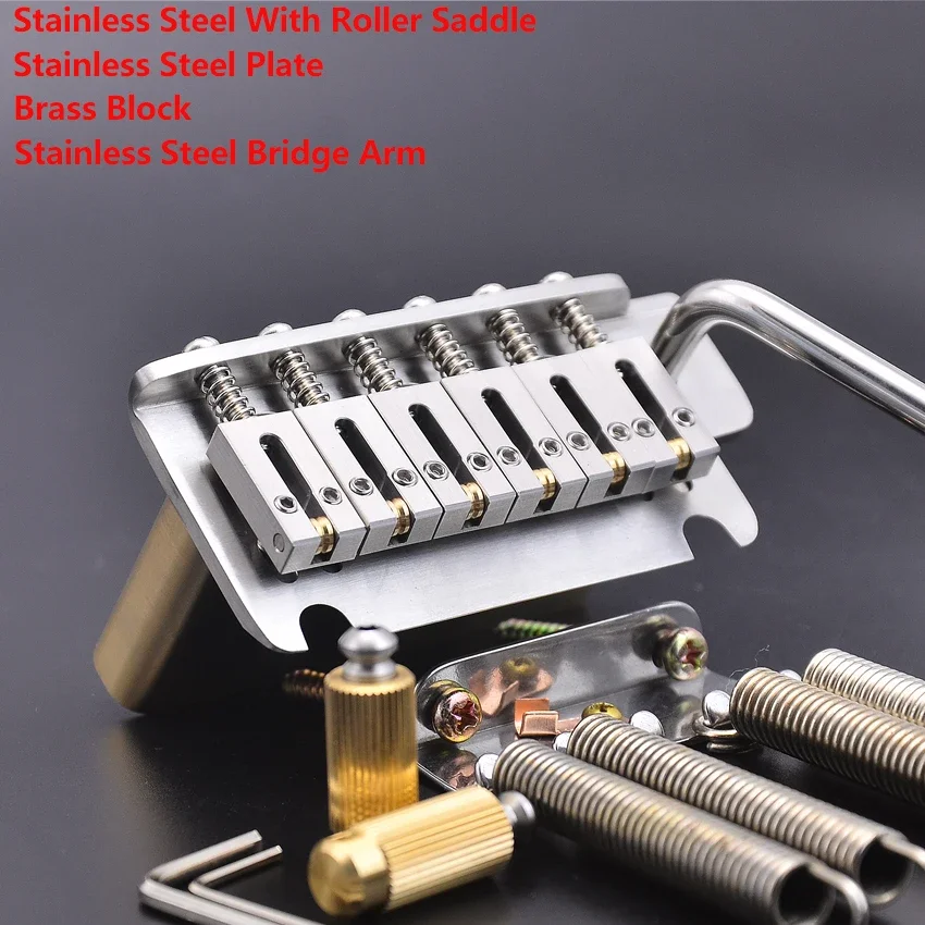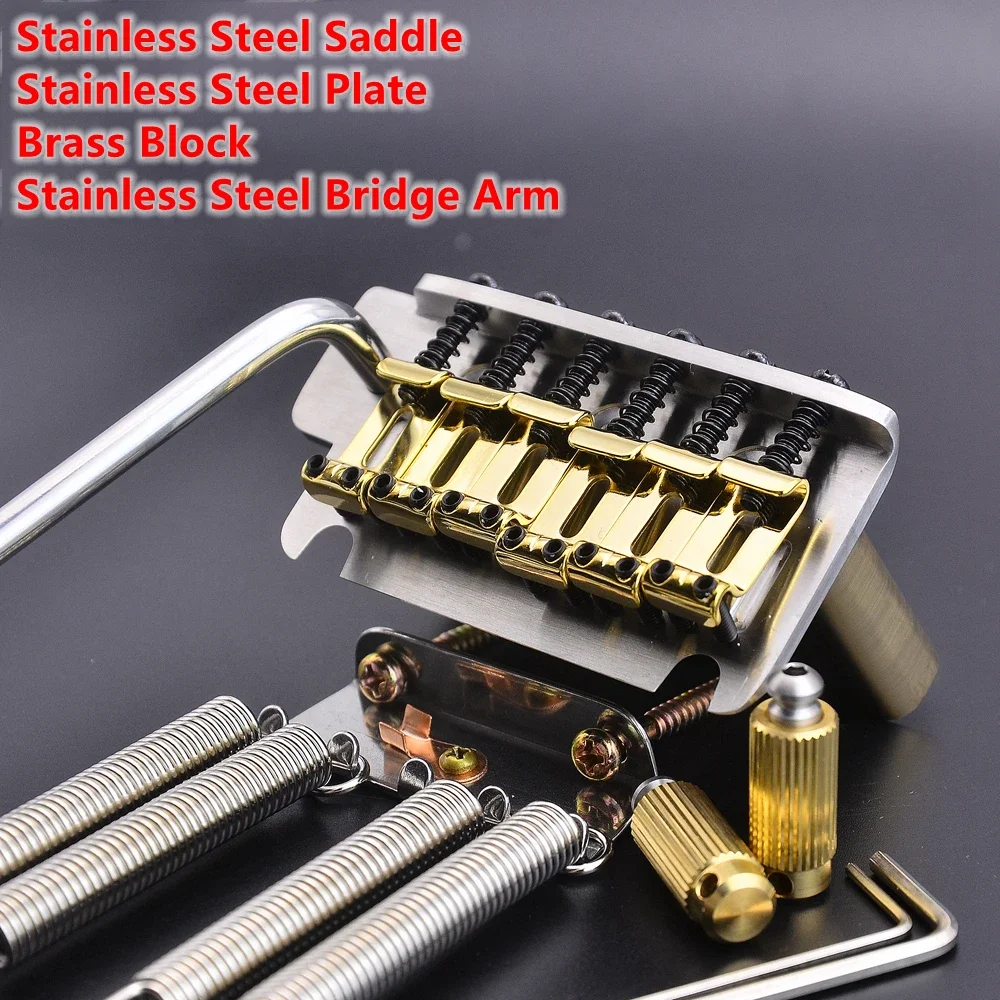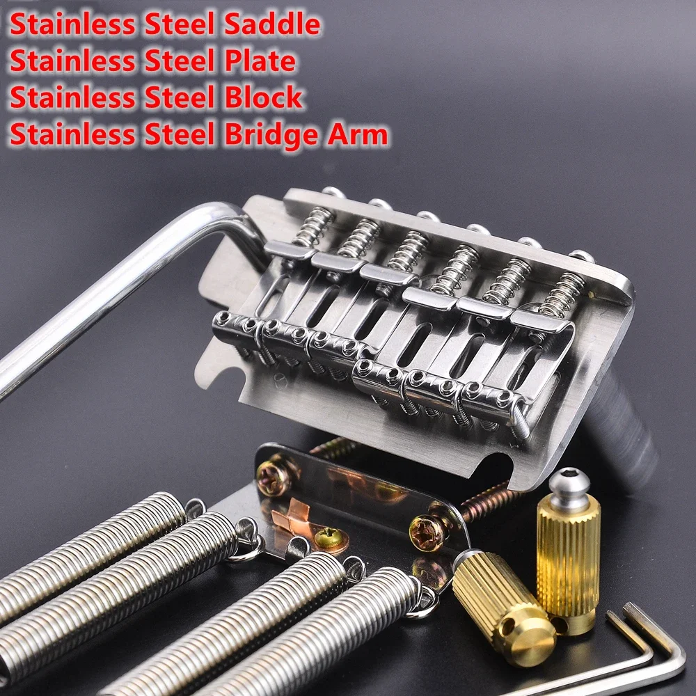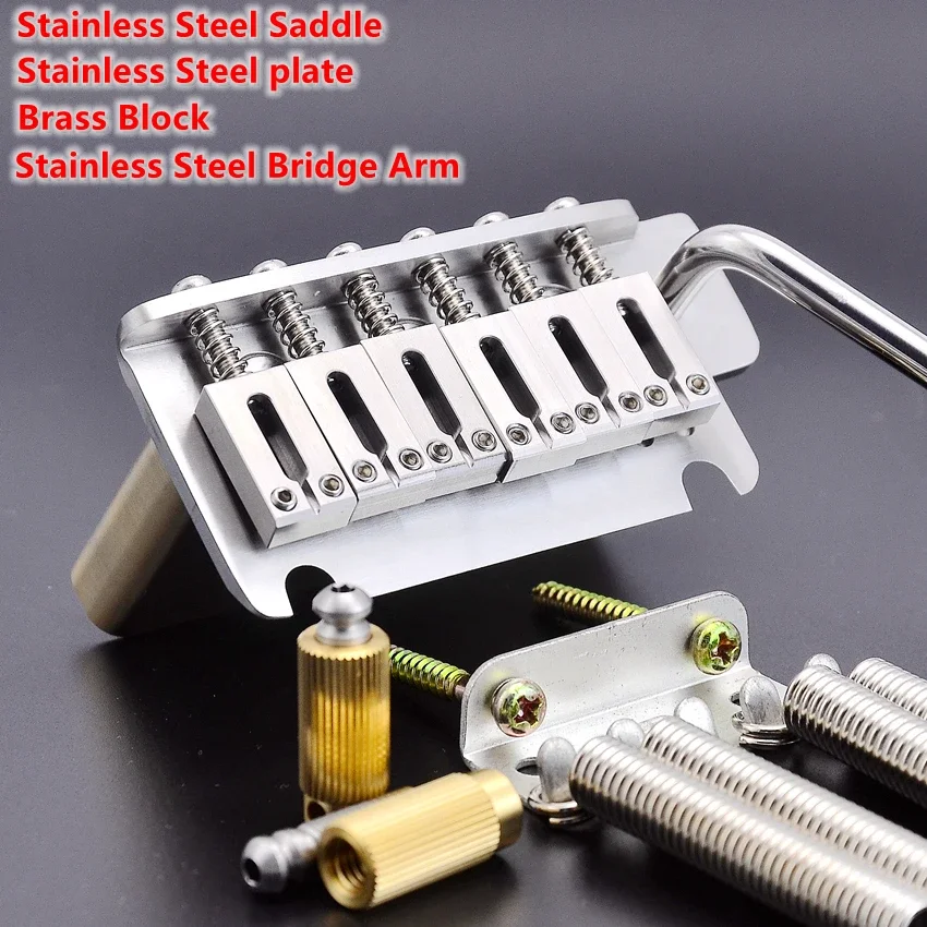 Enhance your guitar’s performance with the 2 Point 510 Style Tremolo System Bridge, model number 1367, meticulously crafted from stainless steel, brass, and titanium alloy for unparalleled durability. Weighing 505 grams, this robust bridge is designed for precision with its rectangular shape and rounded edges, featuring multiple saddles for effective string positioning and tuning stability. Available in various finishes, including polished stainless steel, matte black, and elegant gold, this tremolo system is compatible with an array of left-hand and right-hand kits, making it a versatile addition to your guitar setup. Experience superior playability and aesthetic appeal seamlessly combined.