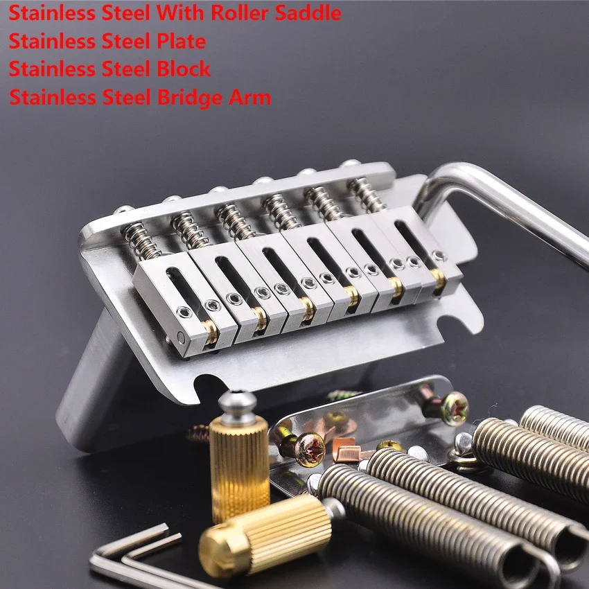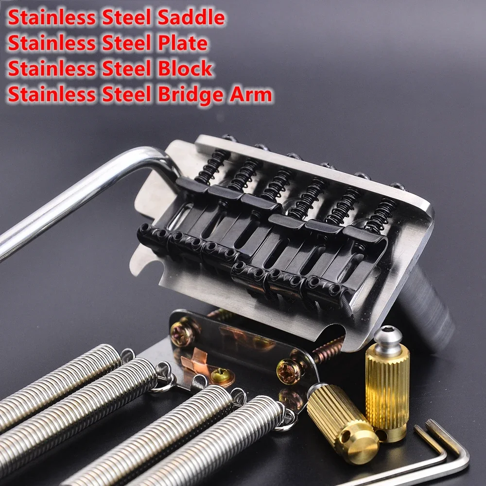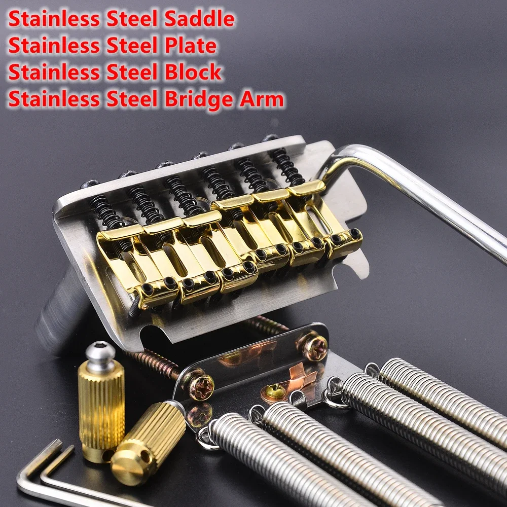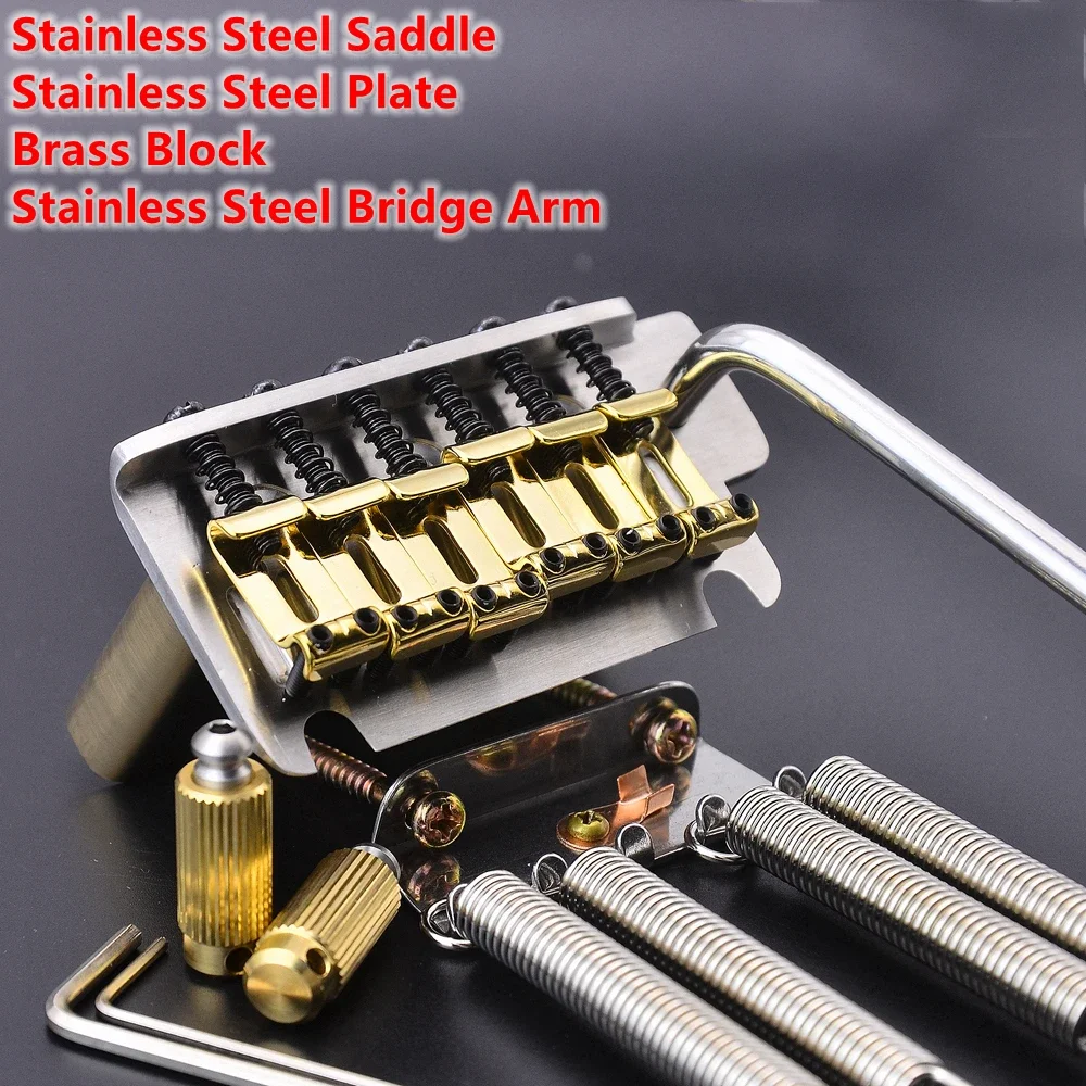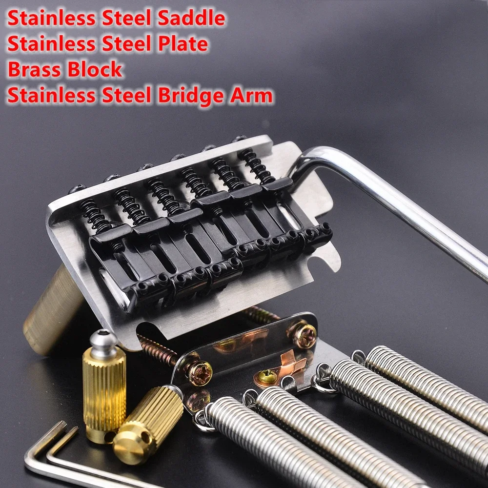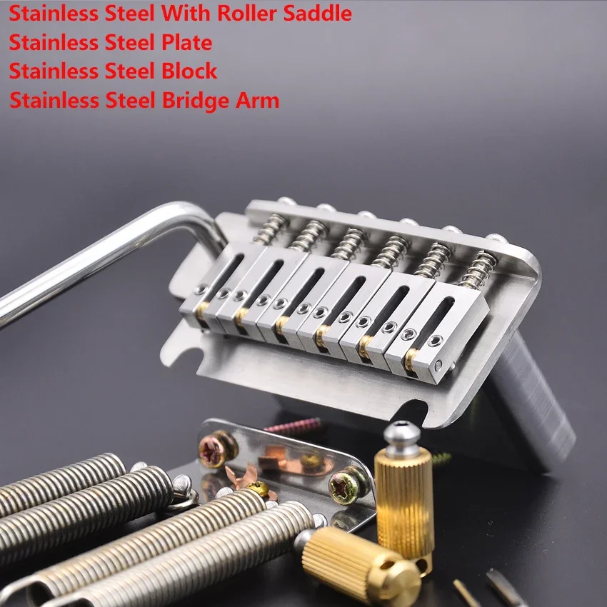 Enhance your guitar’s performance with the 2 Point 510 Style Tremolo System Bridge, model number 1367, meticulously crafted from stainless steel, brass, and titanium alloy for unparalleled durability. Weighing 505 grams, this robust bridge is designed for precision with its rectangular shape and rounded edges, featuring multiple saddles for effective string positioning and tuning stability. Available in various finishes, including polished stainless steel, matte black, and elegant gold, this tremolo system is compatible with an array of left-hand and right-hand kits, making it a versatile addition to your guitar setup. Experience superior playability and aesthetic appeal seamlessly combined.