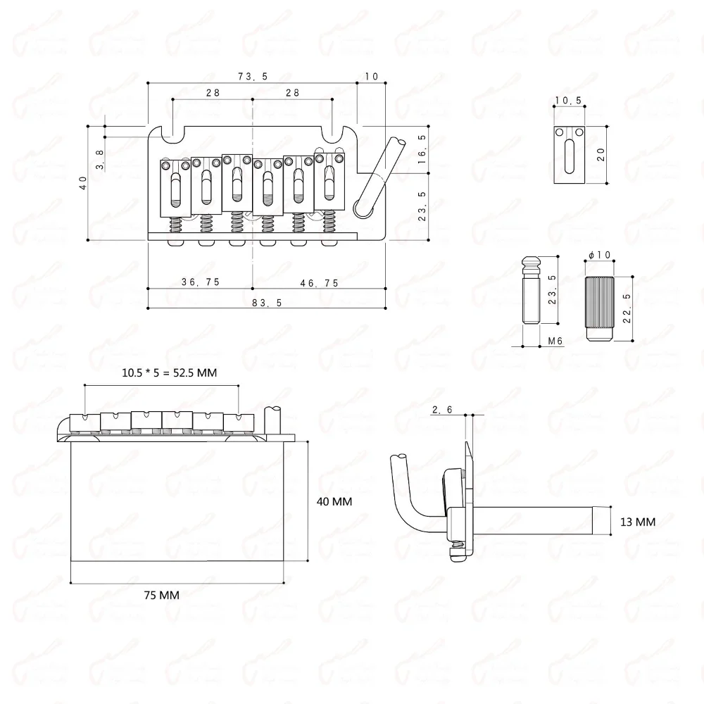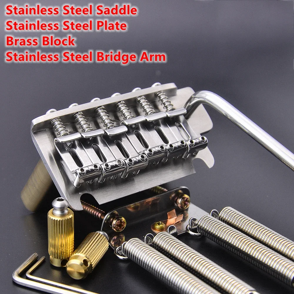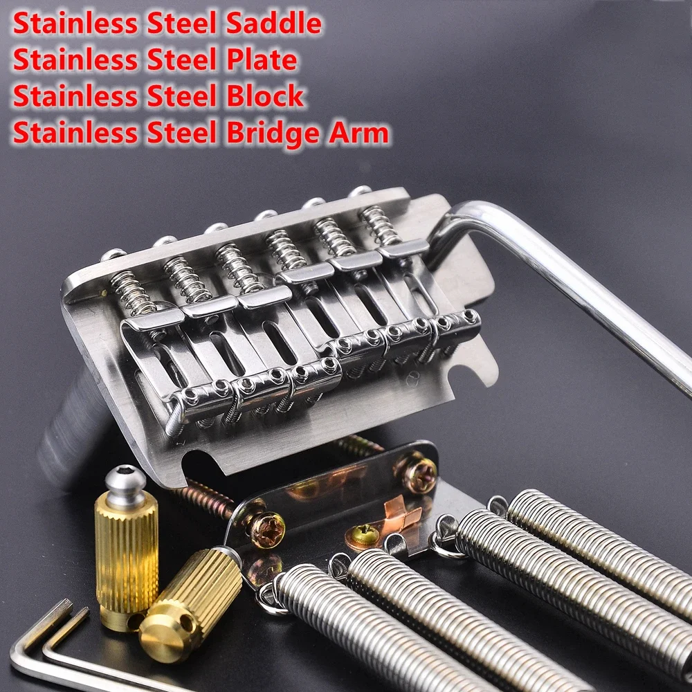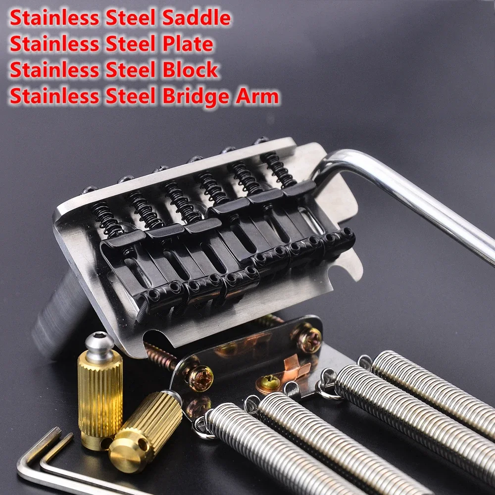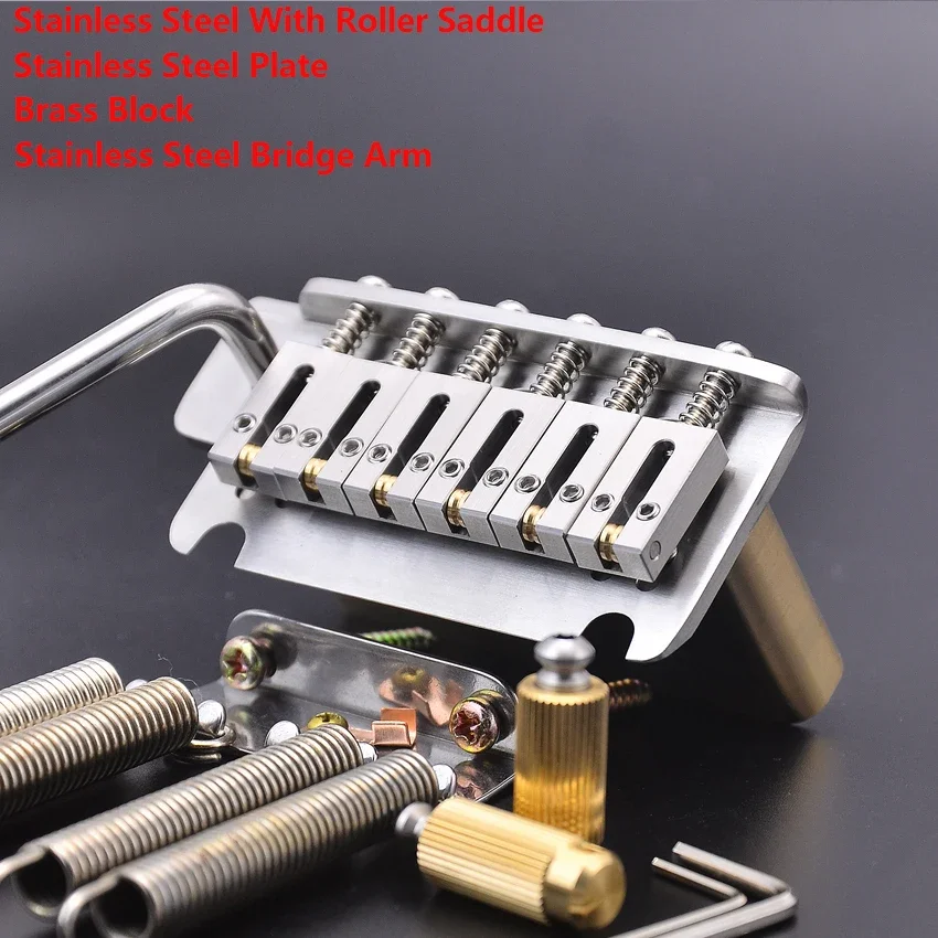 Enhance your guitar’s performance with the 2 Point 510 Style Tremolo System Bridge, model number 1367, meticulously crafted from stainless steel, brass, and titanium alloy for unparalleled durability. Weighing 505 grams, this robust bridge is designed for precision with its rectangular shape and rounded edges, featuring multiple saddles for effective string positioning and tuning stability. Available in various finishes, including polished stainless steel, matte black, and elegant gold, this tremolo system is compatible with an array of left-hand and right-hand kits, making it a versatile addition to your guitar setup. Experience superior playability and aesthetic appeal seamlessly combined.