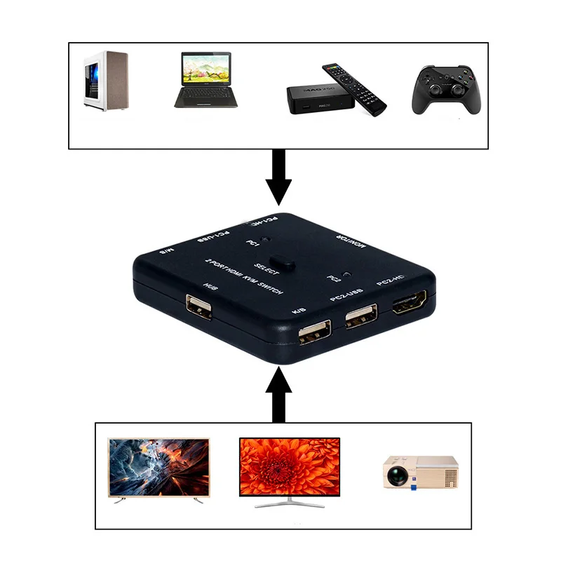 - Supports HDMI DDC and USB 2.0 connections, compatible with LCD screens, scanners, printers, gaming devices, and keyboards, simplifying multiple device management.