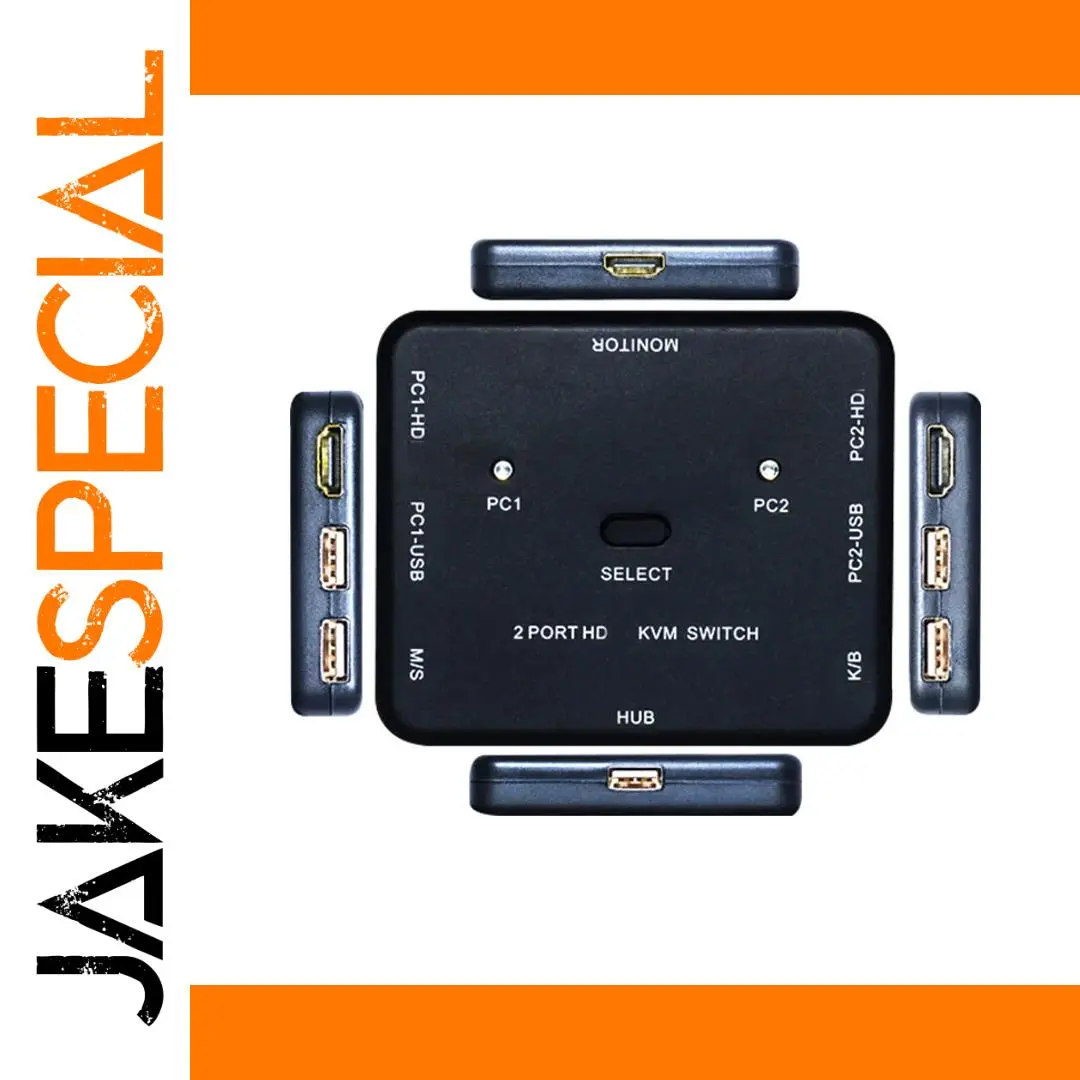 Experience effortless management of dual computers or media devices with this elegant 2-port KVM switch. Its modern compact design features a matte black finish accented by metallic details, creating a sophisticated look that complements any workspace. The central oval “SELECT” button and LED indicators provide intuitive control and status updates. With vibrant orange USB ports, connecting peripherals like mice, keyboards, or printers is both easy and visually appealing. The gold-plated HDMI ports ensure high-quality connections, supporting up to 4K and 2K resolutions, including 3D stereo video, perfect for detailed visuals and immersive media. This device combines style and advanced technology, enhancing your digital experience through intuitive switchability and premium build quality.