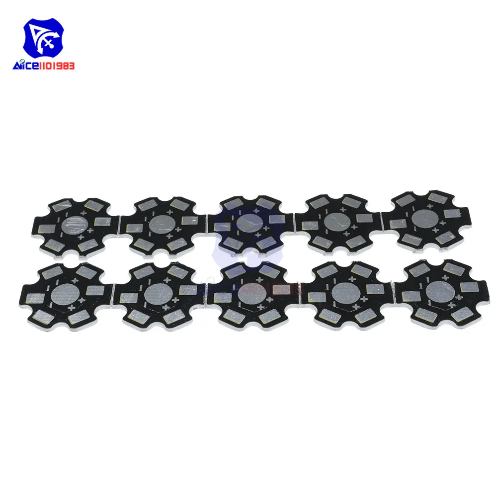 Experience superior temperature management with this set of 20 high-performance aluminum heat sinks designed specifically for powerful LEDs. Each unit features a black matte finish with silver-colored fins and a star-shaped design, adding a modern, technical aesthetic to your projects. With a diameter of 20mm and a thickness of 1.5mm, these efficient heat sinks boast excellent heat dissipation properties, low thermal resistance, and easy welding capabilities. Ideal for 1W, 3W, and 5W LED applications, they ensure your lighting devices operate within a safe temperature range from -20°C to 120°C. Their organized and durable design makes them perfect for energy-saving lamps, ceiling spotlights, line lights, and wall lights, providing both style and functionality in one package.