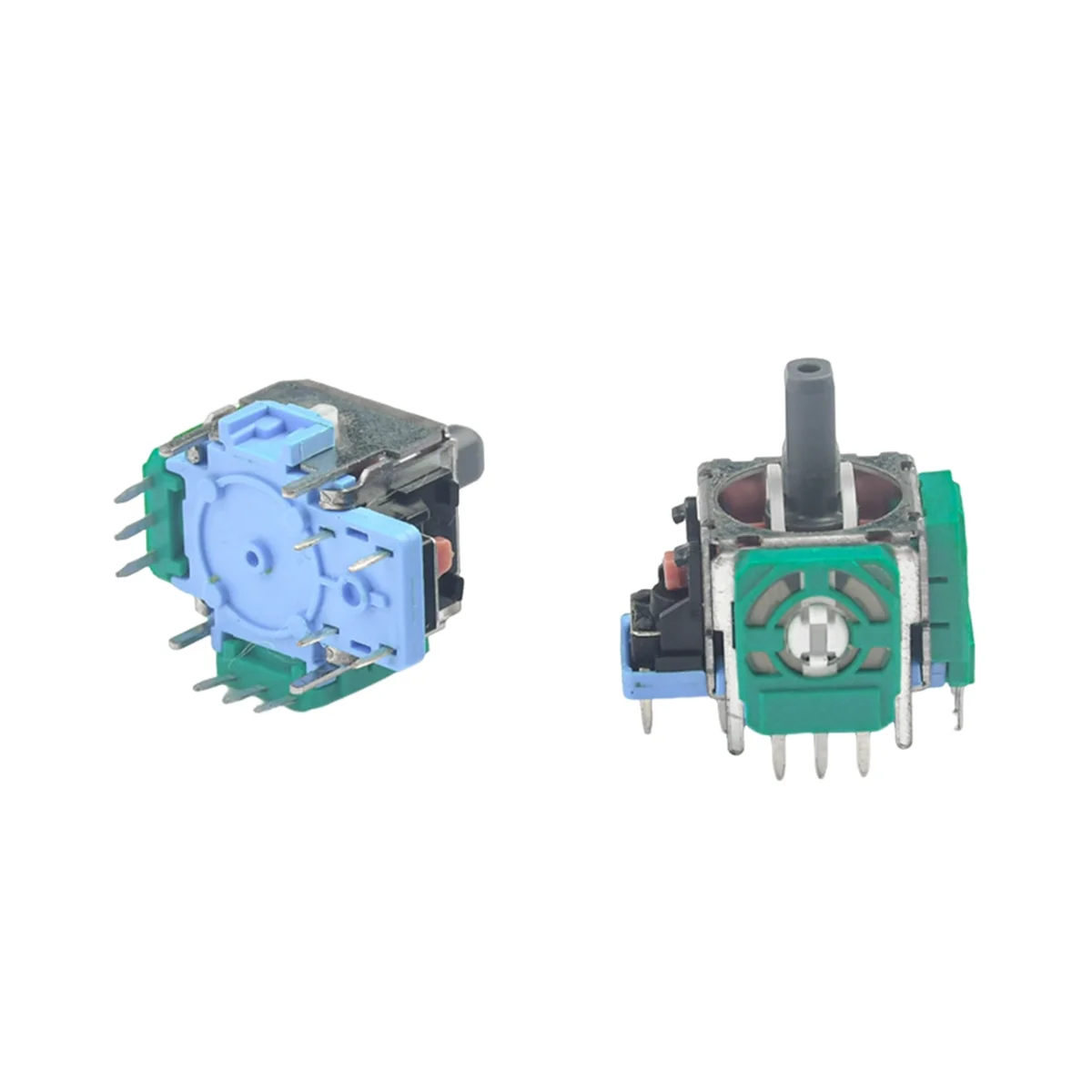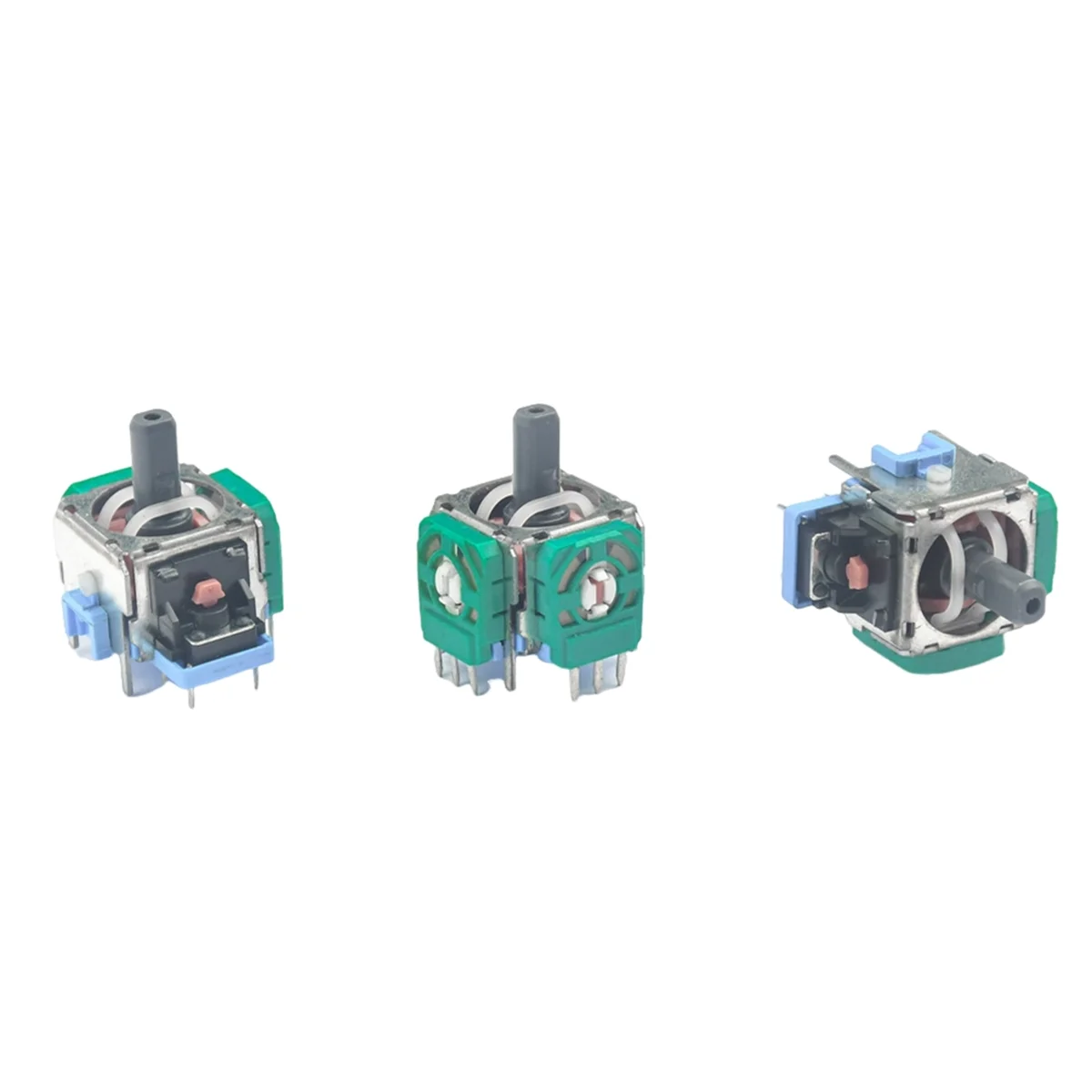 Upgrade your gaming experience with this set of 20 high-quality replacement 3D analog joystick thumb sticks compatible with PS4, Switch Pro, and Xbox One controllers. Crafted from durable plastic and metal, these joysticks feature vibrant green housings with smooth, rounded gray tips, metallic rings around the base for an industrial touch, and light blue accents for a pop of color. Designed for easy installation without requiring electrical power or USB connections, these replacement sticks ensure responsive directional control. Each component is precisely manufactured to fit compatible controllers, with minor variations in appearance and color that do not affect performance, providing a reliable and visually appealing upgrade for your gaming setup.