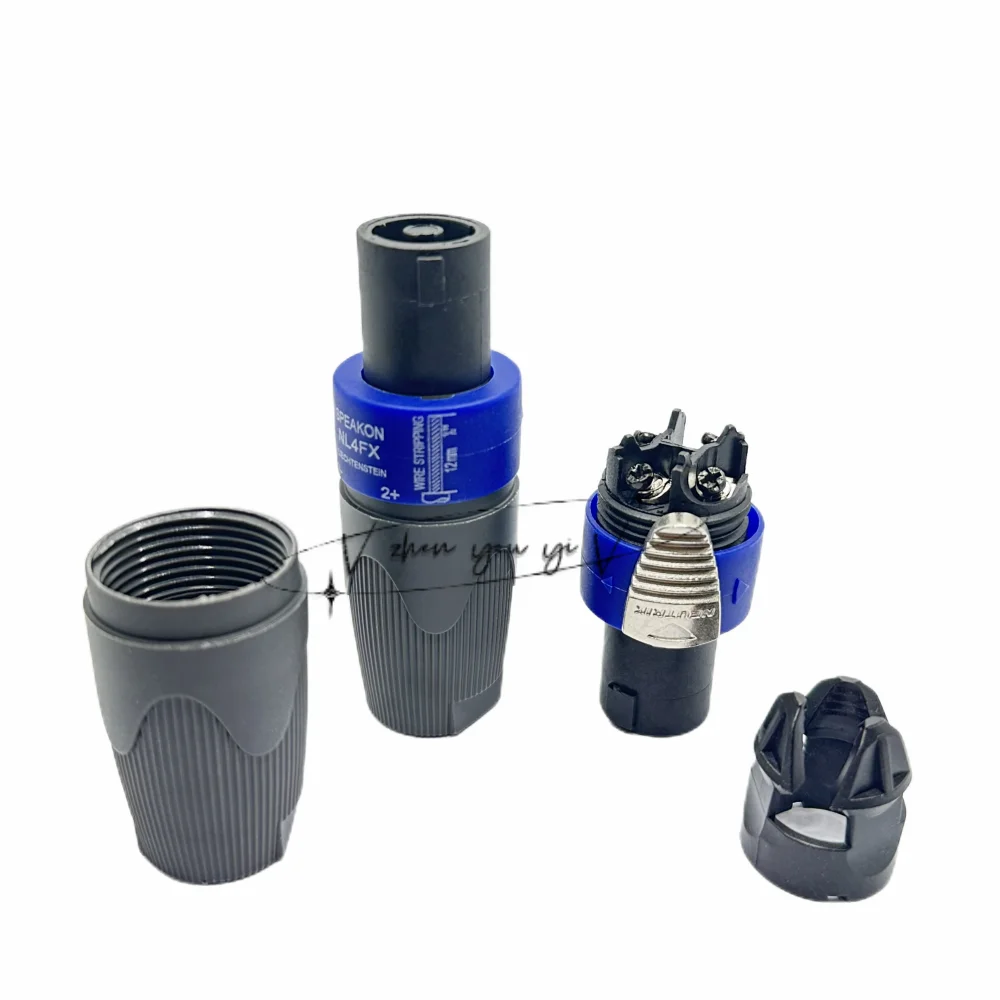 Upgrade your professional audio setup with this set of 20 high-quality NL4FX Speakon connectors, each featuring a durable black cylindrical design with a ribbed metal shell for secure grip. These new, original male connectors are four-pole (4-pin) NL4FC compatible, designed for reliable signal transmission and secure locking to ensure a stable connection. Suitable for speaker and amplifier connections, each connector is rated for 220V, combining robustness and precision for consistent audio performance in demanding environments. Crafted for durability and ease of use, these connectors are ideal for audio enthusiasts seeking professional-grade, dependable connections for high-performance sound systems.
