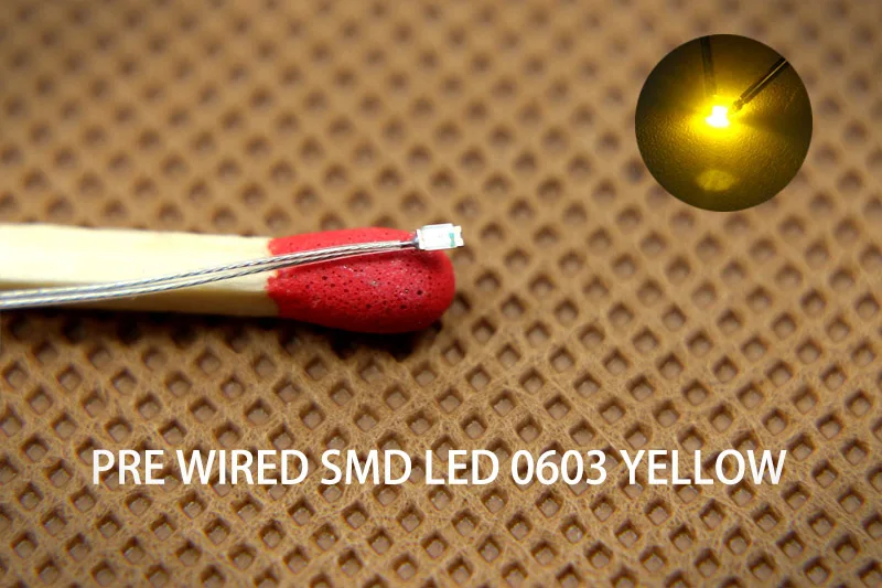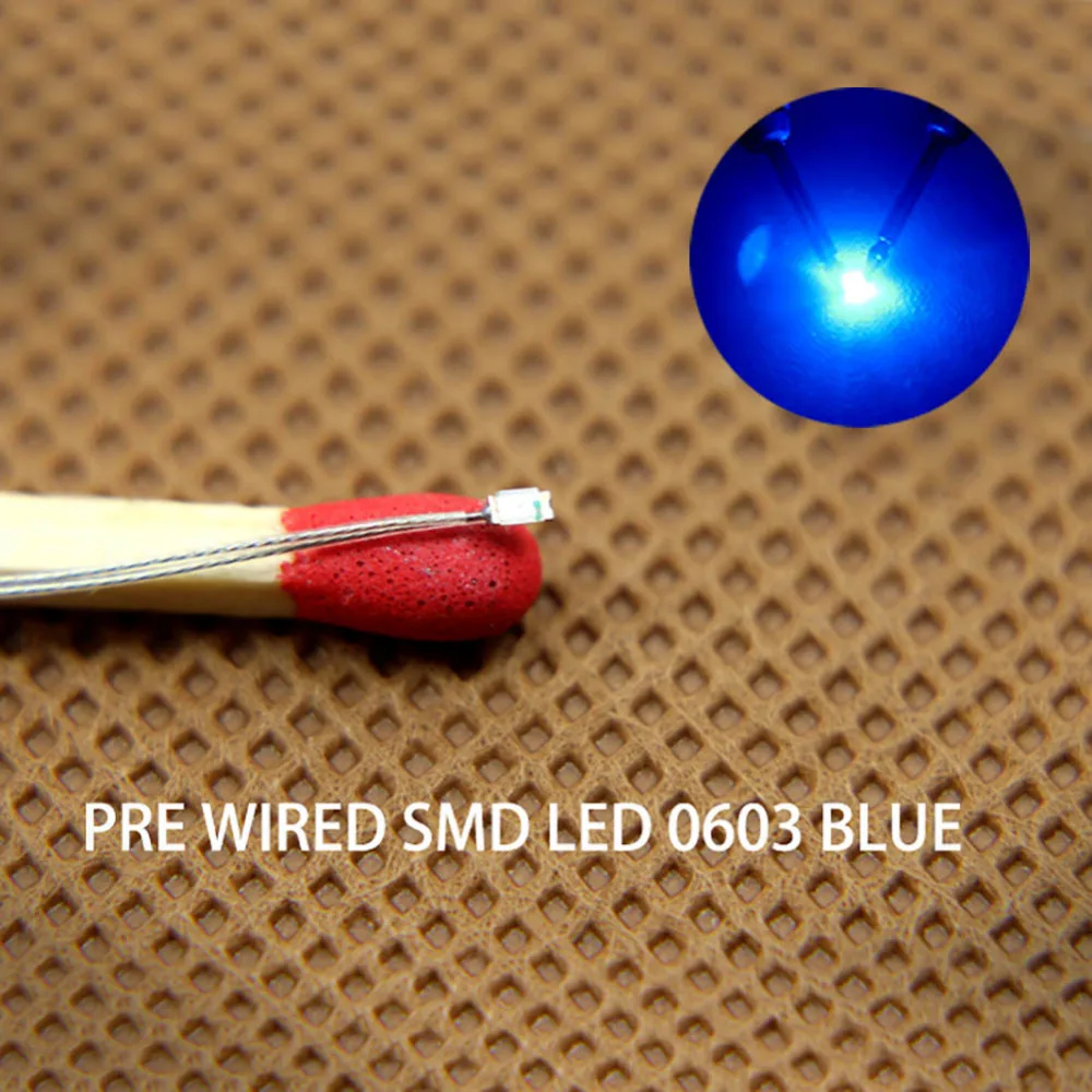 Experience easy integration and vibrant illumination with this set of this Evemodel T0603 SMD LEDs, ideal for miniature models and tight spaces. These pre-wired LEDs come with flexible, water-like PTFE insulated wires, providing a sleek and neat finish. Each LED measures 1.60 x 0.80 mm, offering precise size for delicate projects. With a standard forward voltage of 2.8V to 3.4V and a typical current of 15mA, they deliver bright, consistent light. The 120-degree viewing angle enhances visibility, making them perfect for creating stunning effects. Designed for AC/DC compatibility, this set gives you maximum flexibility for various applications. Whether for model trains, architectural displays, or intricate scenes, these LEDs will elevate your work with their quality and versatility.