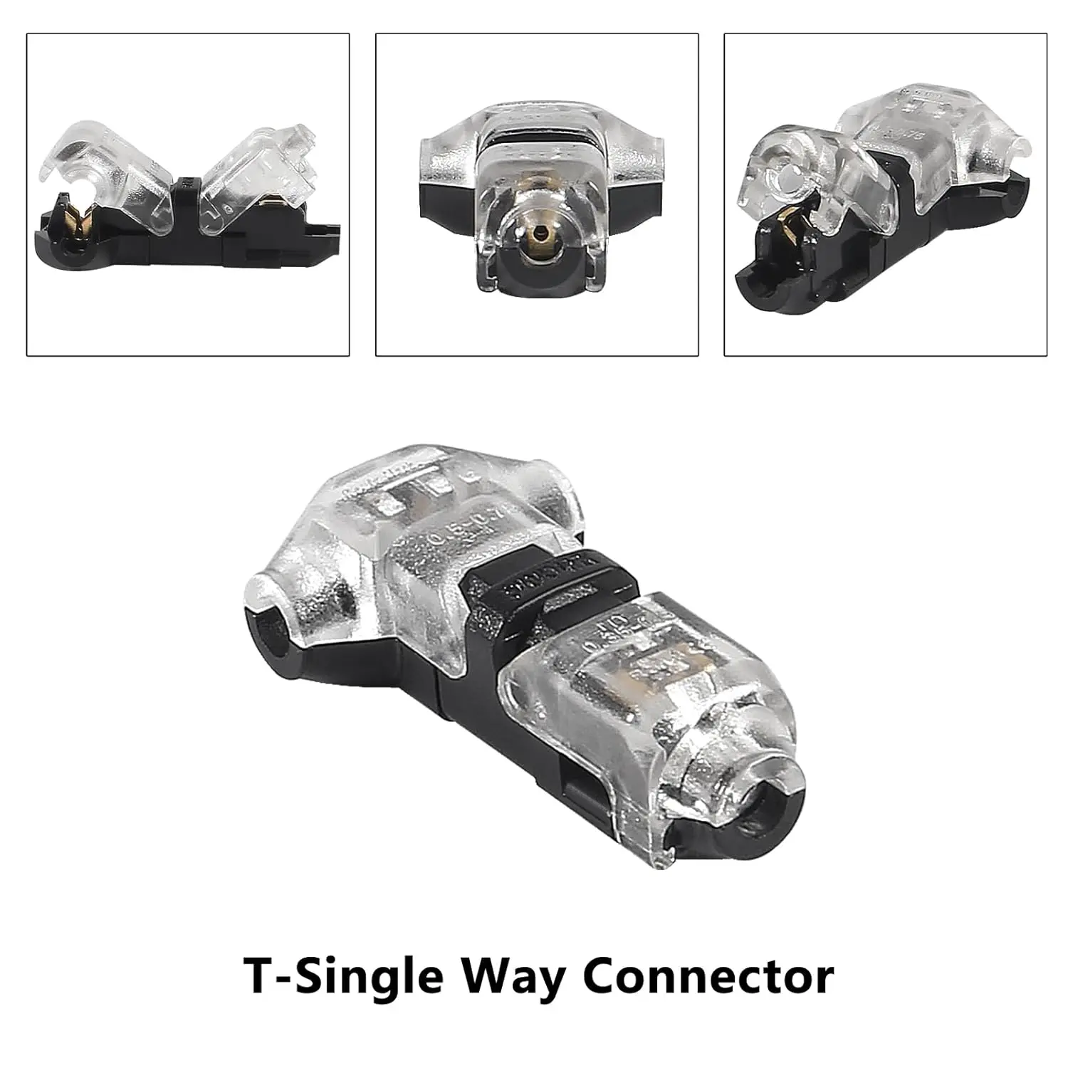 - Each connector has a 1-pin T configuration, enabling efficient T tap wiring for low voltage systems with quick, solderless installation.