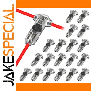 Experience seamless and secure wiring with this set of 20 transparent T Type 1 Pin wire connectors by AOKIN. Crafted from clear, durable plastic, these connectors allow you to visually confirm wire placement and connection quality. The sleek, elongated shape with a slight rounded profile provides a compact and modern aesthetic, perfect for both professional and DIY electrical projects. The internal metal contacts efficiently clamp wires into position, ensuring a reliable, solderless splice. The black locking mechanism adds a robust hold, preventing any accidental disconnections. Ideal for low voltage applications, these connectors simplify T tap wiring, making your tasks quicker and more efficient. Their lightweight yet sturdy construction ensures longevity under various conditions, letting you trust your electrical connections will stay secure over time.