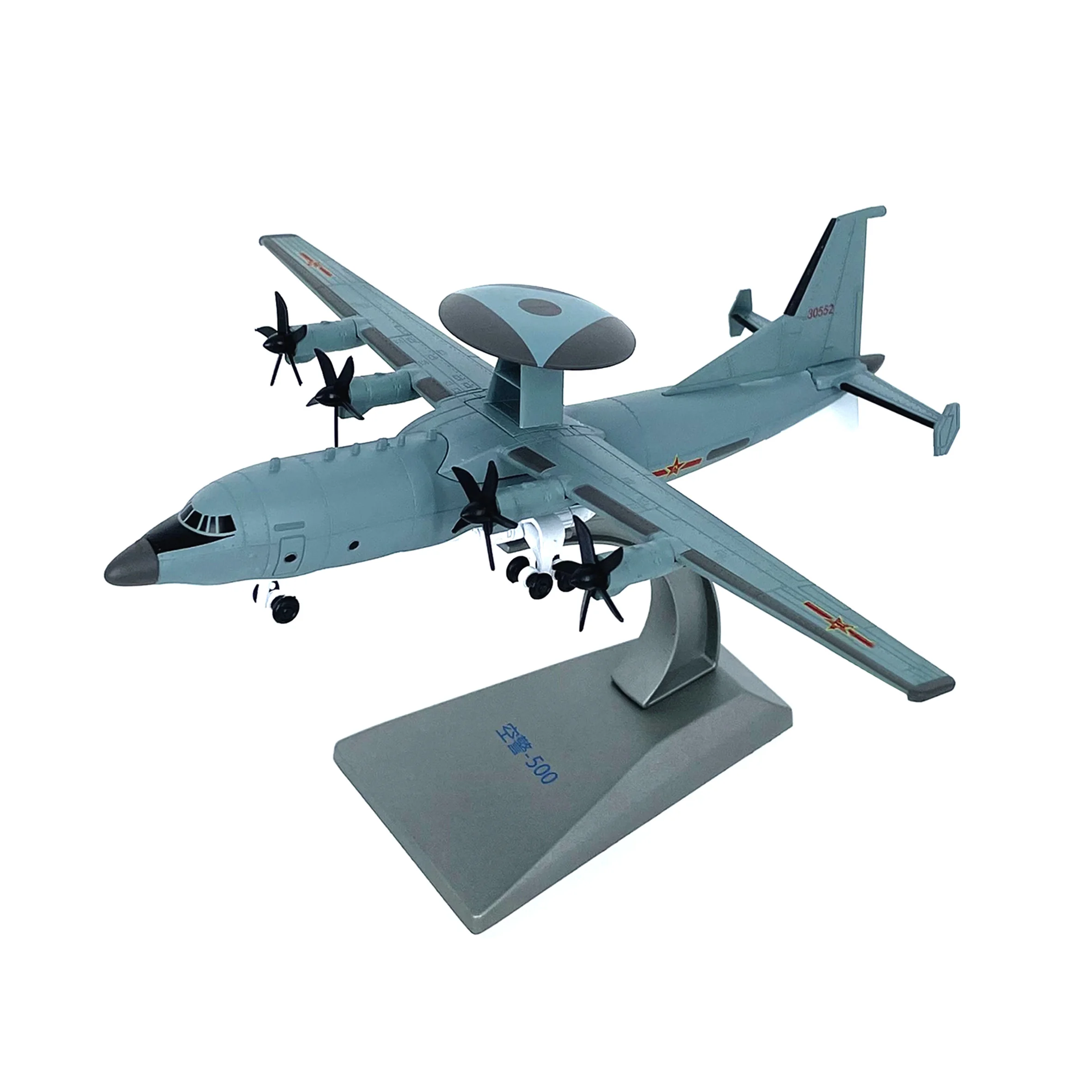 This intricately detailed model of the KJ500 Early Warning Aircraft offers a prestigious addition to any collection or display. Crafted from alloy and ABS, it features realistic movable propellers and wheels, capturing the sleek design and military markings of this modern turboprop aircraft. Measuring approximately 17.5 by 19.7 by 5.7 cm, the model sits securely on a stylish stand, creating an impressive visual of dynamic flight. Perfect for enthusiasts and collectors, this model embodies precision craftsmanship and military excellence, making it a compelling centerpiece or gift for those who appreciate detailed aviation replicas.