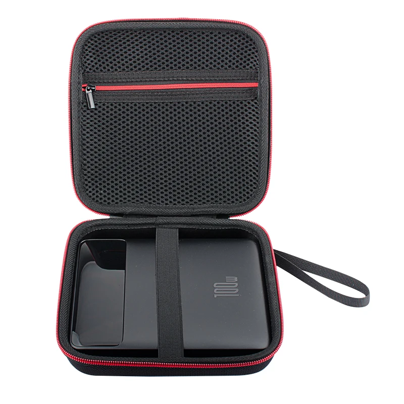 Protect your 20,000mAh, 100W power bank with this durable, black EVA travel case measuring 175 x 175 x 50 mm and weighing 190g. Designed to be shockproof, dustproof, and waterproof, it features a sturdy, smooth zipper, a comfortable handle for easy portability, and an internal pocket for accessories. Crafted from heavy-duty EVA material, this protective case ensures secure transportation and enhanced safety for your external battery charger, combining sleek style with practical, heavy-duty protection for your valuable electronic device.