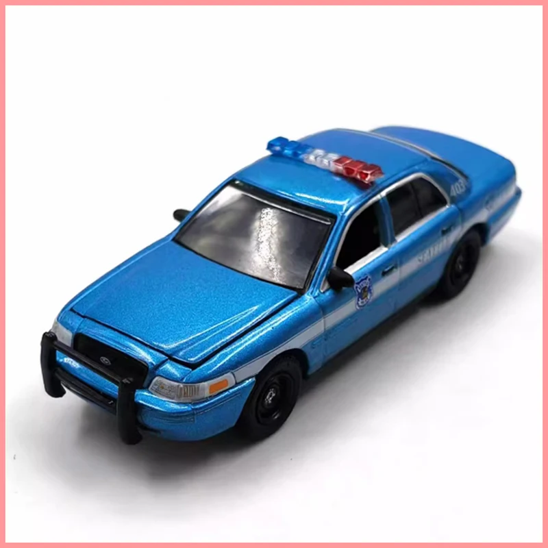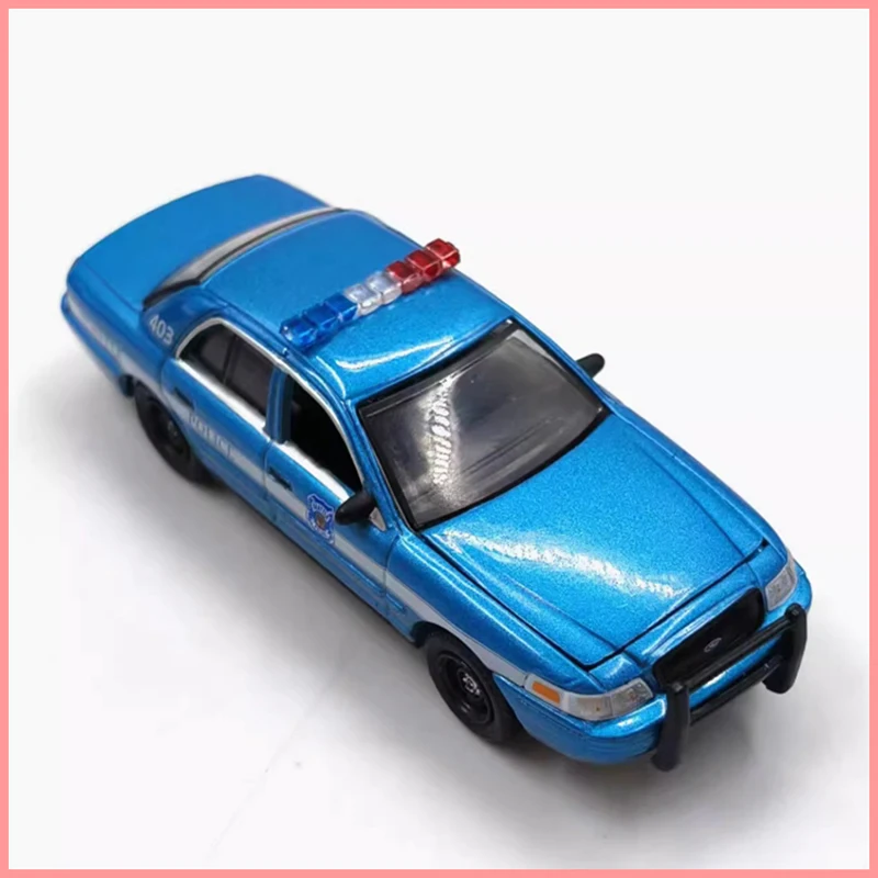 This exquisite diecast model of the 2001 Crown Victoria Police Interceptor showcases vibrant blue metallic paint that glistens beautifully under light. Designed at a scale of 1/64, it is crafted with precision, featuring realistic details like a black mesh grille and a police light bar with alternating red and blue lights. The clear headlights and transparent windshield allow for a peek into the model, while the rounded black wheels complete its authentic police vehicle appearance. Made from durable alloy and plastic, this model is perfect for collectors and enthusiasts. You'll love displaying it in your collection, capturing the essence of the iconic police car.