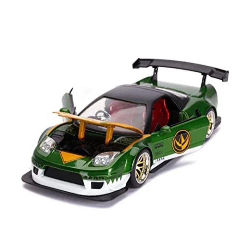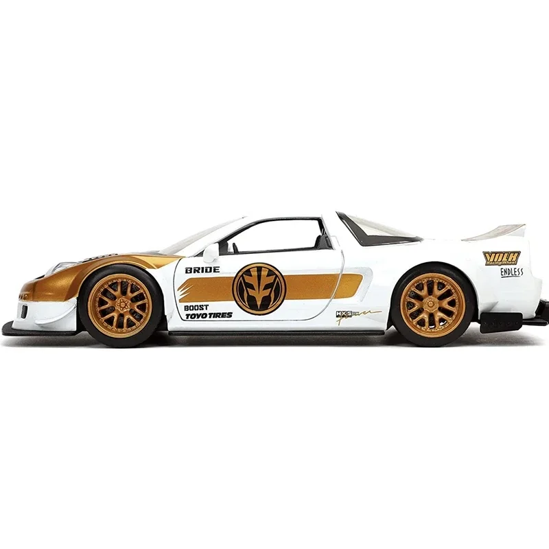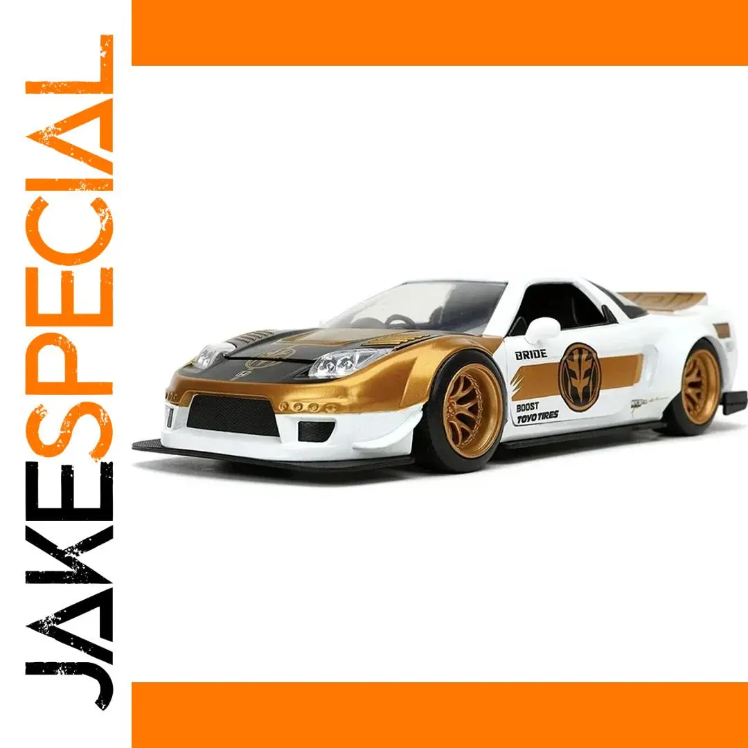 Capture the essence of high-performance automotive design with this 1:24 scale diecast model of the 2002 Honda NSX Type-R Japan Spec. Crafted from alloy and plastic, this detailed replica measures approximately 1:24, showcasing sleek, aerodynamic body lines, a low stance, and intricate decals. The model features striking gold accents on the hood, roof, and side panels, complemented by realistic gold alloy wheels and low-profile tires. Its refined design includes clear headlights, a black mesh grille, side mirrors resembling racing car style, and a prominent gold rear wing spoiler, making it an impressive addition for enthusiasts and collectors alike.