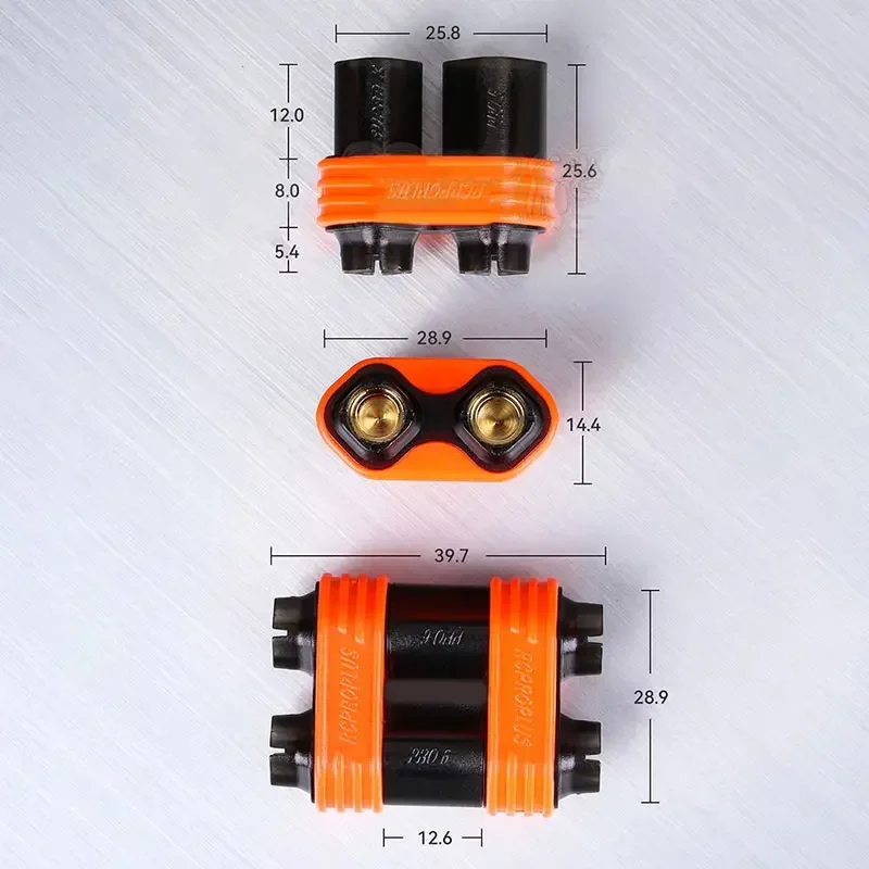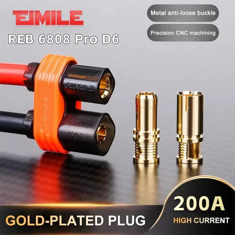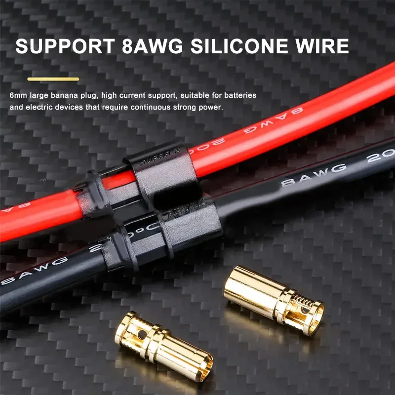 Experience reliable high-current connections with this 200A lithium battery connector set, featuring gold-plated plug and socket components with a 6mm inner diameter, compatible with 8AWG silicone wire. Designed for DC voltages up to 60V, it supports a maximum current of 240A and a continuous 200A, making it ideal for high-performance applications. Available in male-male, female-female, and male-female configurations, this welding-free connector ensures secure, corrosion-resistant, and durable connections with a sleek, polished finish. Perfect for safe and efficient lithium battery setups, it combines modern industrial style with excellent electrical conductivity.
