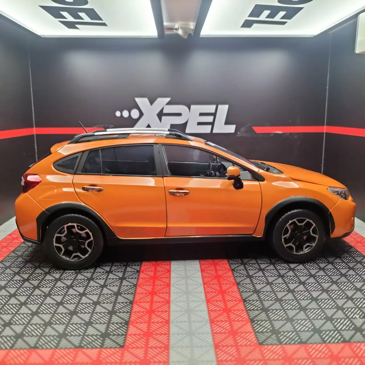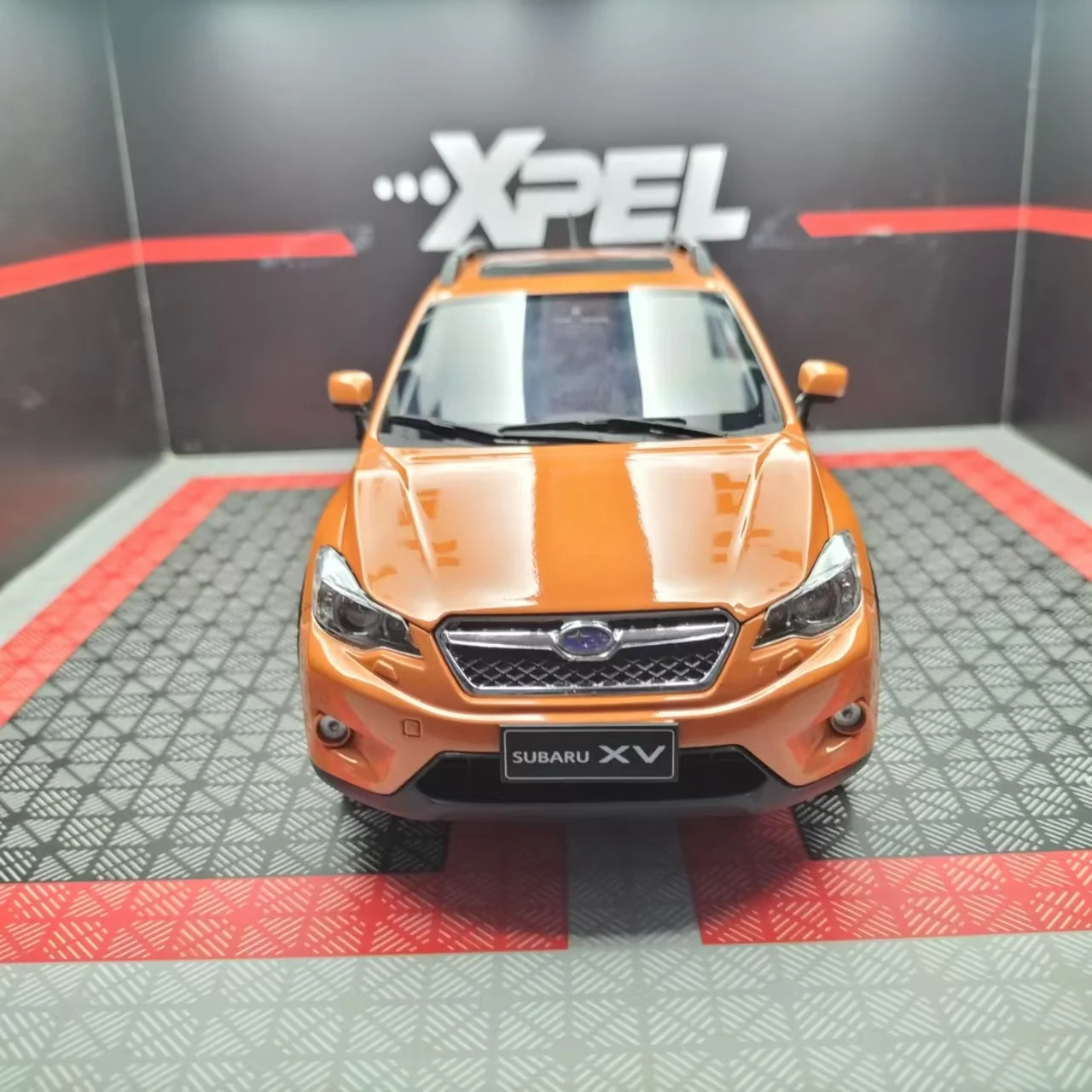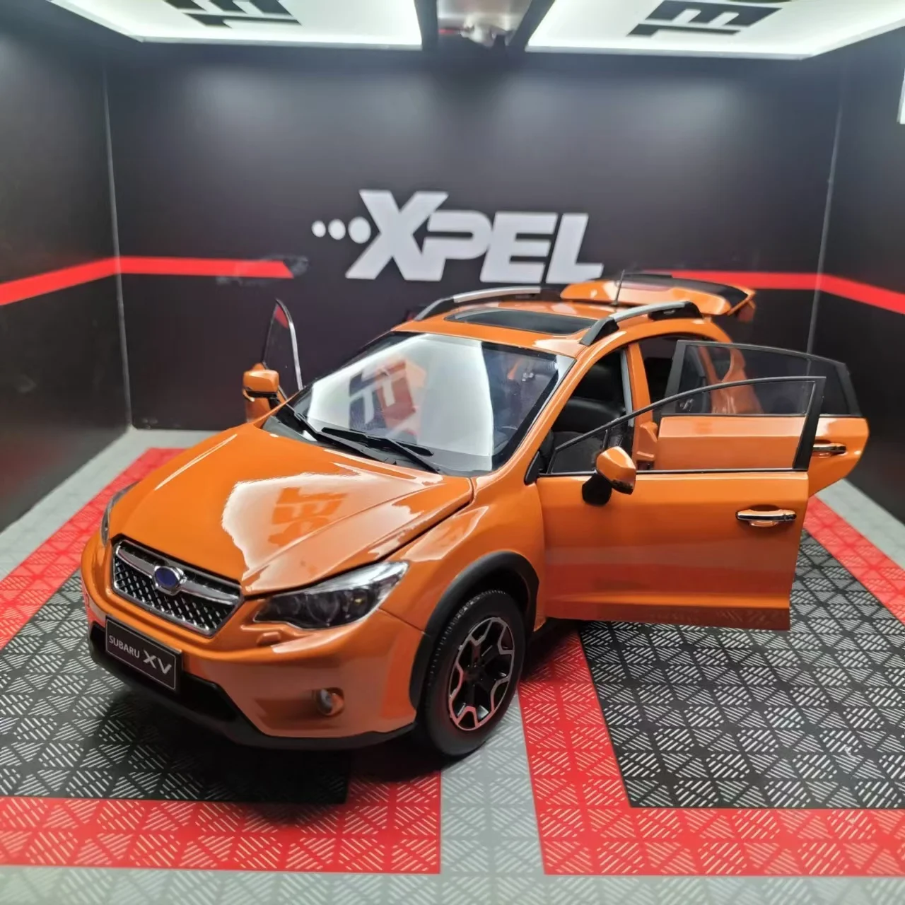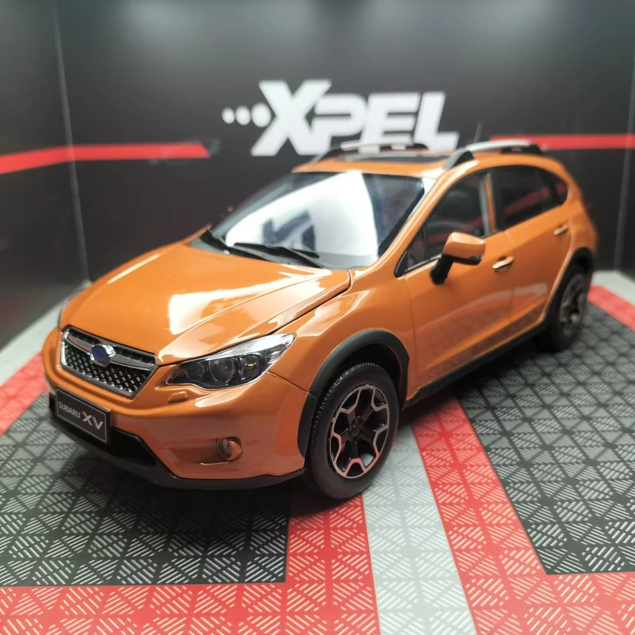 This highly detailed 1:18 scale die-cast model of the 2014 Subaru XV SUV features a vibrant glossy orange finish with sleek, aerodynamic lines, black trims along the wheel arches and window frames, and silver-rimmed intricate wheels with treaded rubber tires. Made from alloy, plastic, and rubber, it includes functional opening doors, front hood, and trunk, perfect for collectors and display enthusiasts. Designed exclusively for static display, it measures approximately scaled to the original vehicle and features precise detailing that captures the modern SUV’s sophisticated silhouette. Suitable for ages 14 and above, it’s an impressive addition to any automotive collection or home decor.