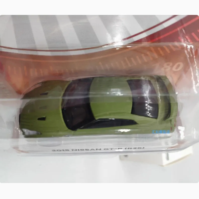 Discover the exquisite craftsmanship of this 1/64 scale diecast model of a 2015 Nissan GT-R (R35). Meticulously crafted from alloy and plastic, this miniature captures the sleek, aerodynamic silhouette with precise detailing. Its vibrant lime green finish, complemented by black accents on the roof, mirrors, and window trims, adds a striking visual appeal that mirrors the real vehicle’s energetic presence. The sharp curves, aggressive front bumper, side vents, and rear spoiler are finely molded for authentic realism. The multilayered, silver-gray multi-spoked wheels with detailed tread patterns provide a sporty, dynamic look. Ideal for collectors, display enthusiasts, or as a thoughtful gift, this model embodies modern automotive design and high-performance spirit, making it an eye-catching addition to any collection.