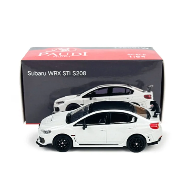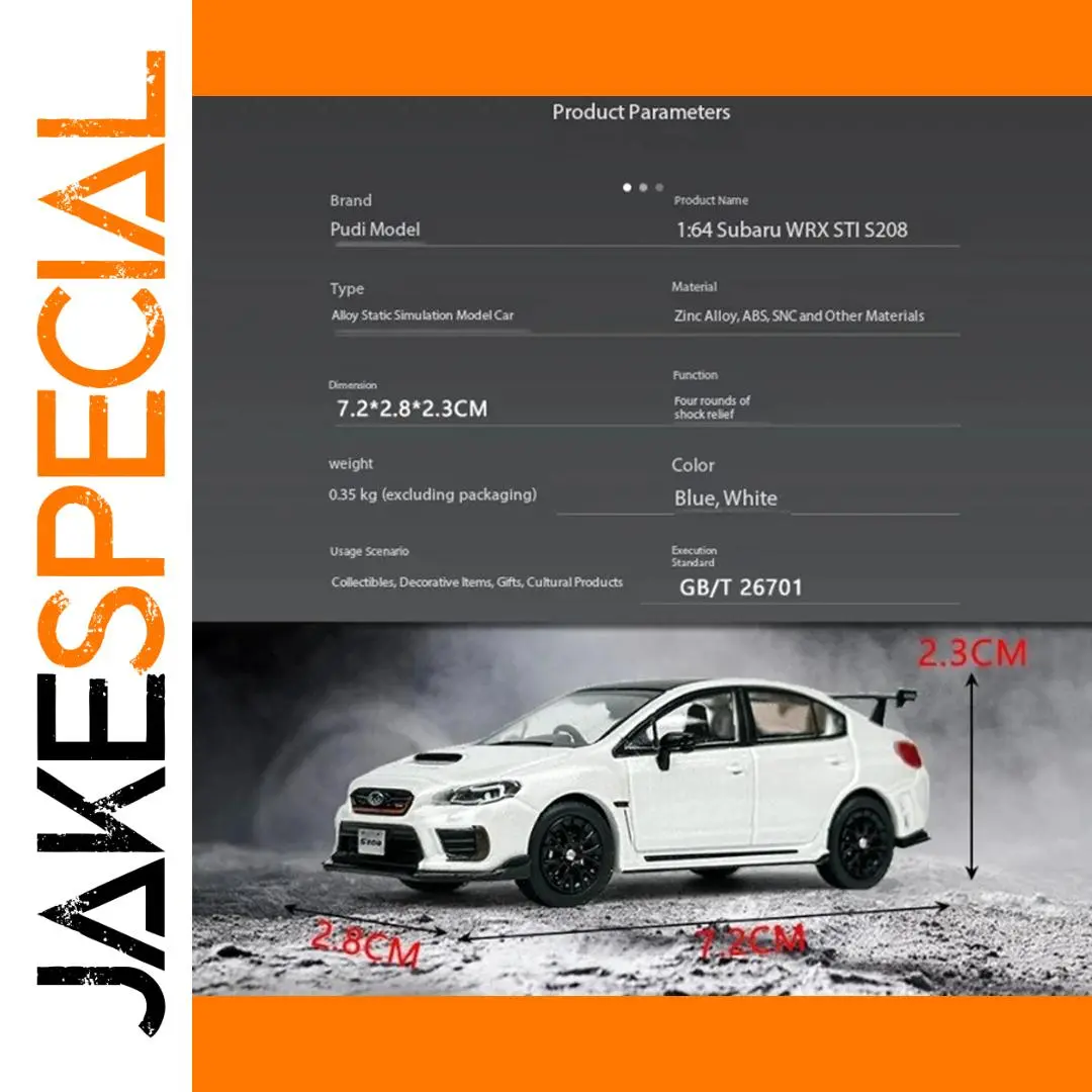 Imagine adding a sleek, sporty touch to your collection with this detailed diecast replica of the 2015 WRX STI S208. Crafted with precision, it captures the essence of a rally car with its aerodynamic shape, low profile, and vivid white color accented by bold black wheels, side mirrors, and rear spoiler. The surface intricately mimics vents, scoops, and aerodynamic enhancements, giving it a realistic appearance. Its compact 1:64 scale makes it perfect for display on your desk, shelf, or as a thoughtful gift for car enthusiasts. Whether you’re a collector or looking to enhance your décor, this model offers a combination of style, craftsmanship, and authenticity that truly stands out.