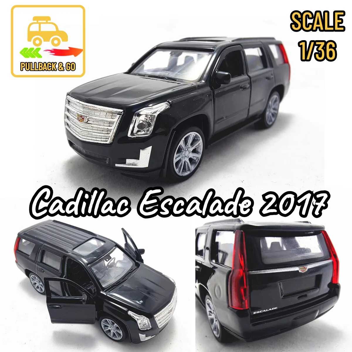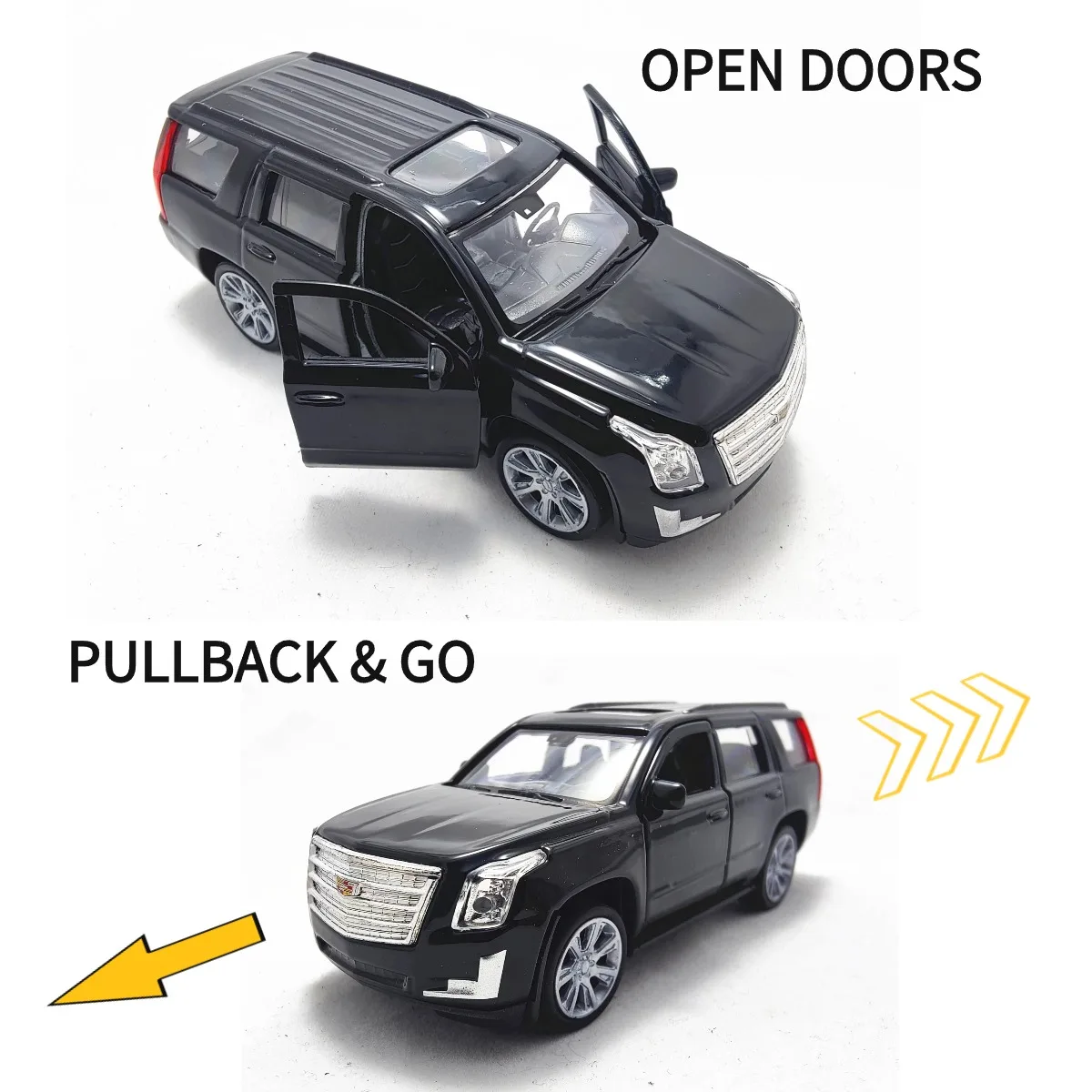 Experience the exceptional craftsmanship of this 1:36 scale model of the 2017 Cadillac Escalade, designed to capture every detail that makes the real vehicle iconic. Finished in a sleek, glossy black, this diecast car features an exquisite front grille with horizontal lines and a stunning chrome effect, complemented by intricately detailed headlights. The robust contours add a sense of authenticity, while its rubber tires and silver alloy wheels enhance the aesthetic appeal. Opening side doors reveal a beautifully rendered interior, perfect for showcasing your taste. This non-electric pullback toy is not just a fun gift but a must-have collector's piece or cake topper, ideal for any occasion.