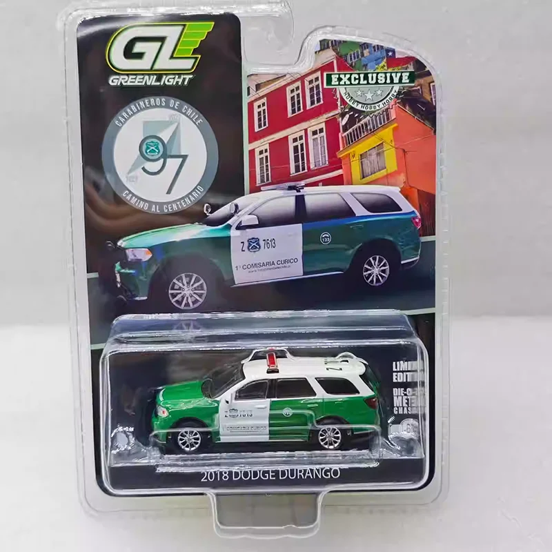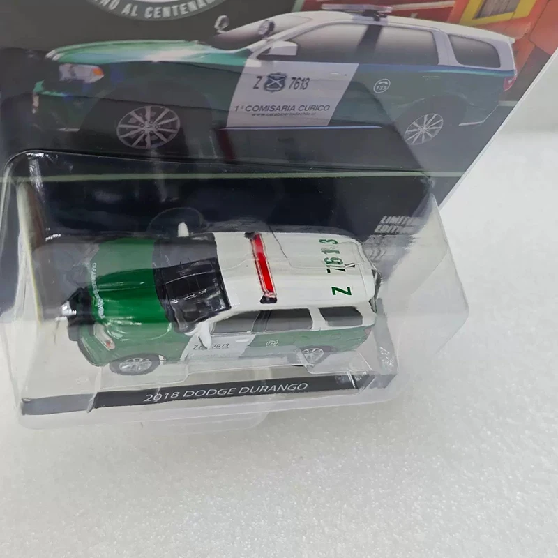 Experience the realism and craftsmanship of this highly detailed 1:64 scale diecast model of the 2018 Dodge Durango. Crafted from alloy and plastic, it captures the sleek, streamlined body featuring a predominantly white and green finish, reminiscent of law enforcement vehicles. The model includes black windows, a prominent red roof light bar, alloy-style wheel rims, and decals such as “COMISARIA CURICO,” delivering an authentic police vehicle look. It’s perfect for collectors seeking a precise, high-quality display piece that emphasizes fine details and realistic proportions. This static model is ideal as a gift or decorative item, offering a sophisticated addition to any collection or display setup.