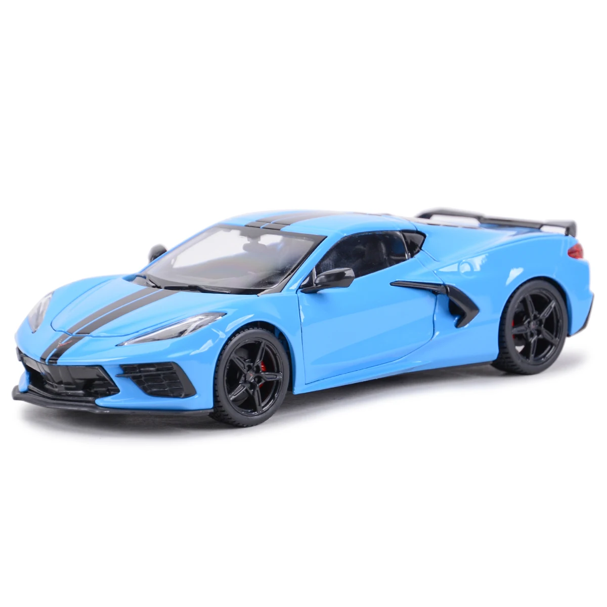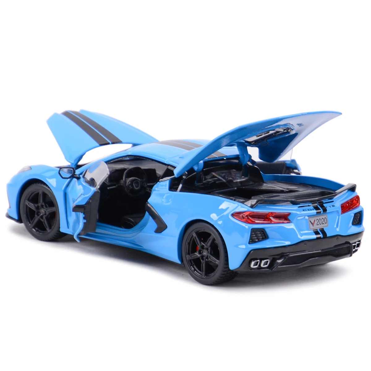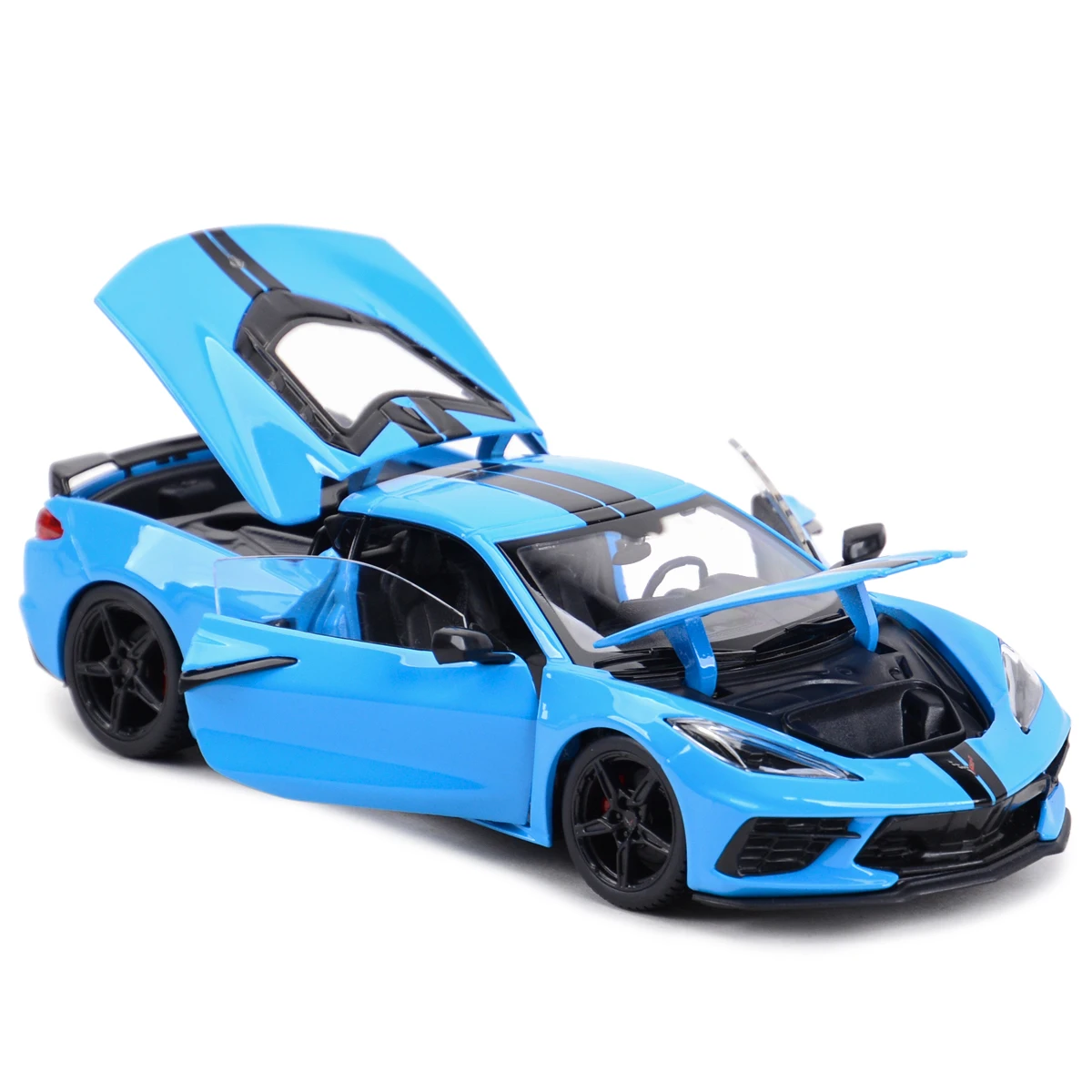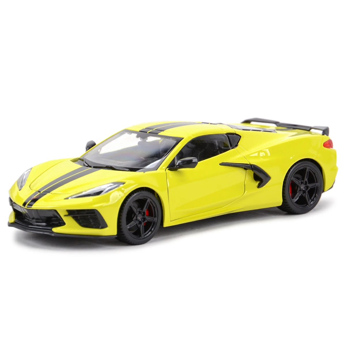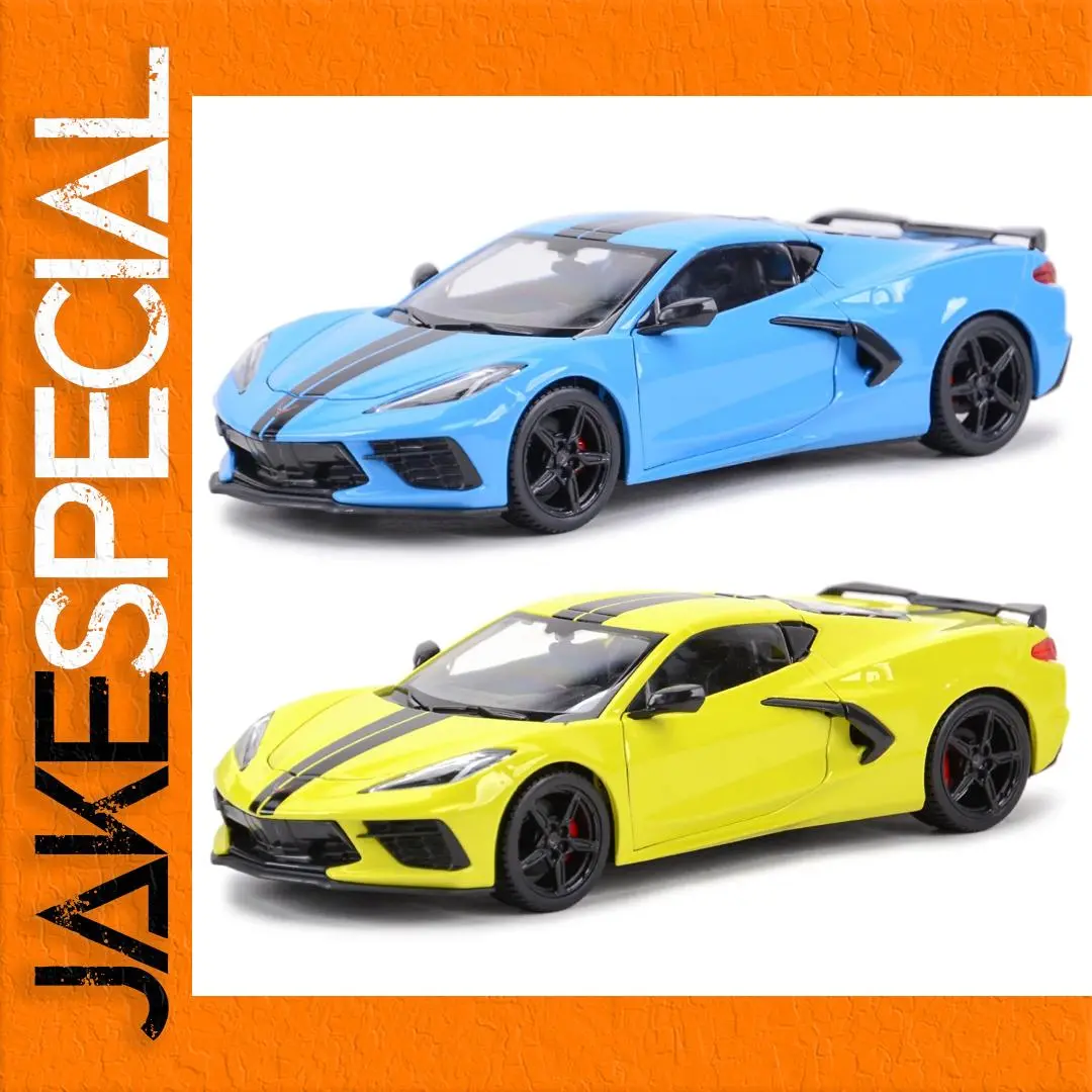 Elevate your collection with this highly detailed 1:24 scale die-cast model of the 2020 Chevrolet Corvette Stingray Coupe Z51, measuring approximately 20.2 cm in length, 8.2 cm in width, and 5.5 cm in height. Crafted from a die-cast metal body with plastic accents, it features functional opening hood and doors, as well as smooth four-wheel free rotation for realistic display. Available in vibrant blue with black racing stripes or bright yellow with matching black racing stripes, this model showcases sleek, aerodynamic lines, sharp headlights, a prominent grille, subtle rear spoiler, and striking taillights. Perfect for enthusiasts aged 14 and above.