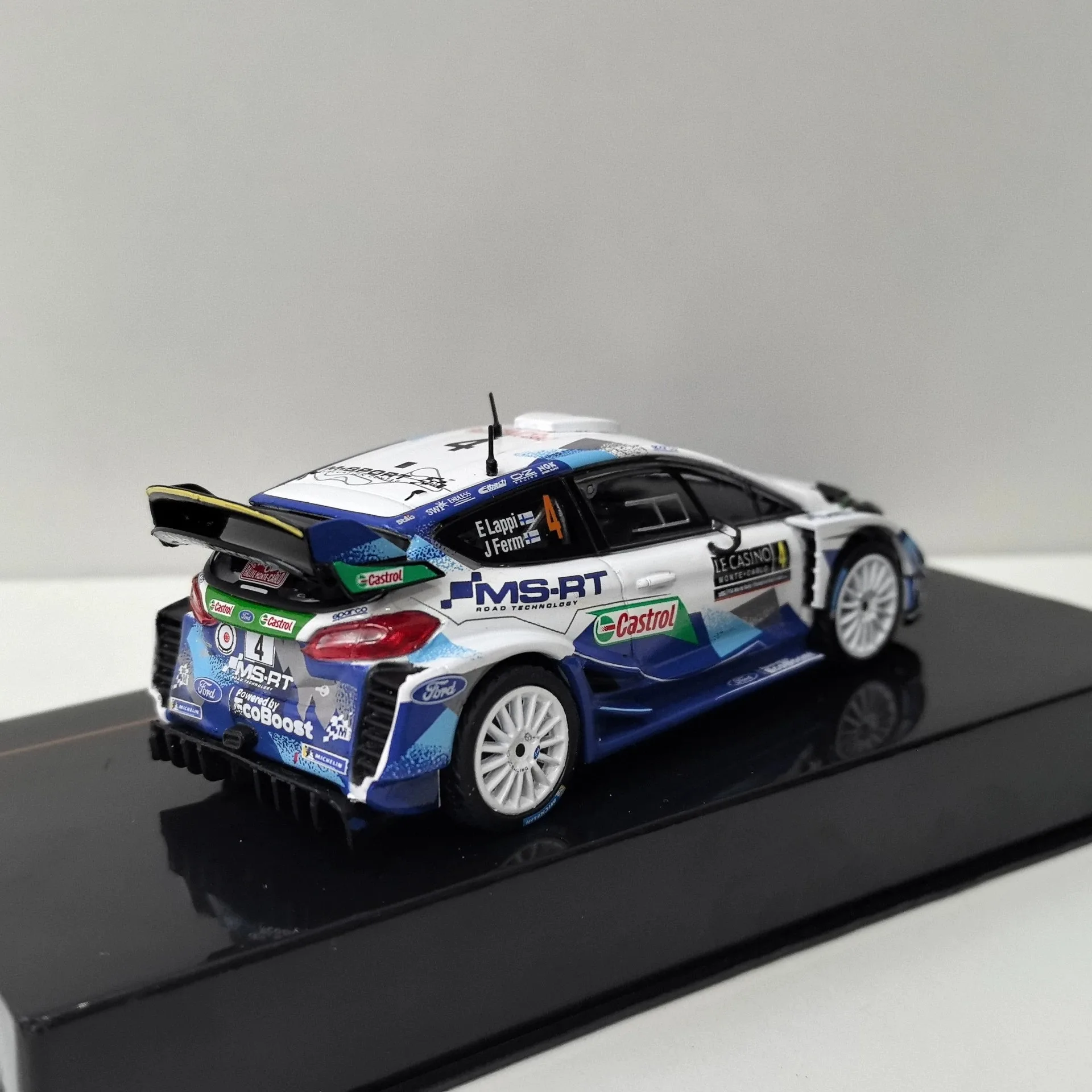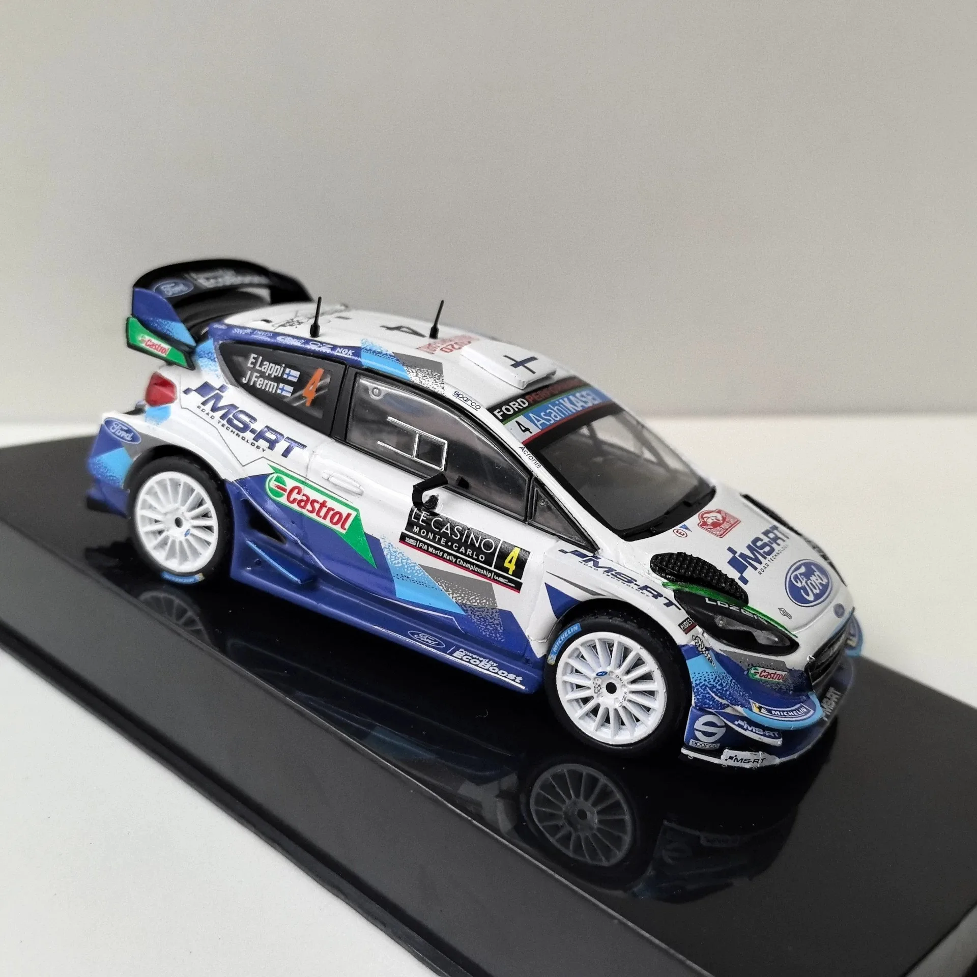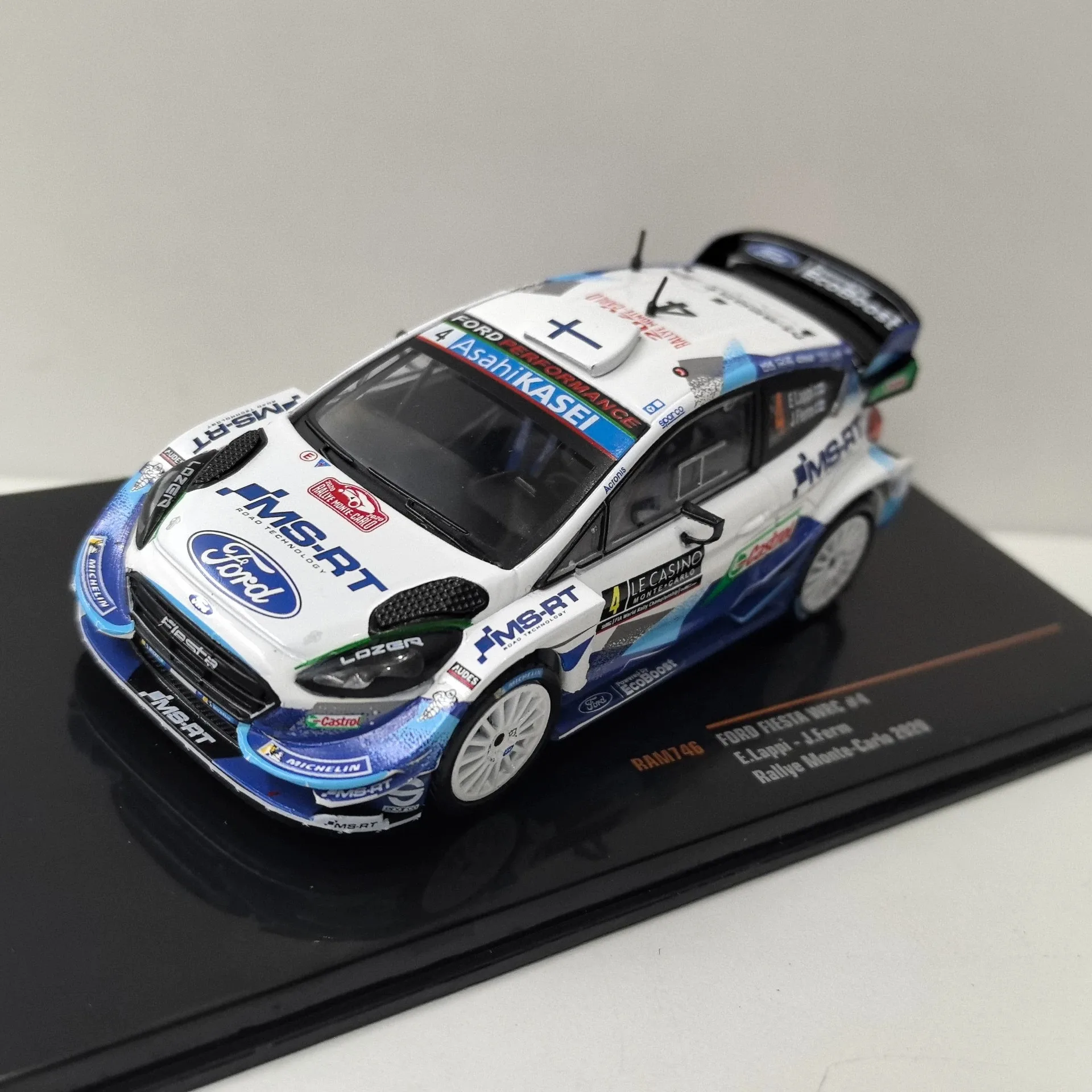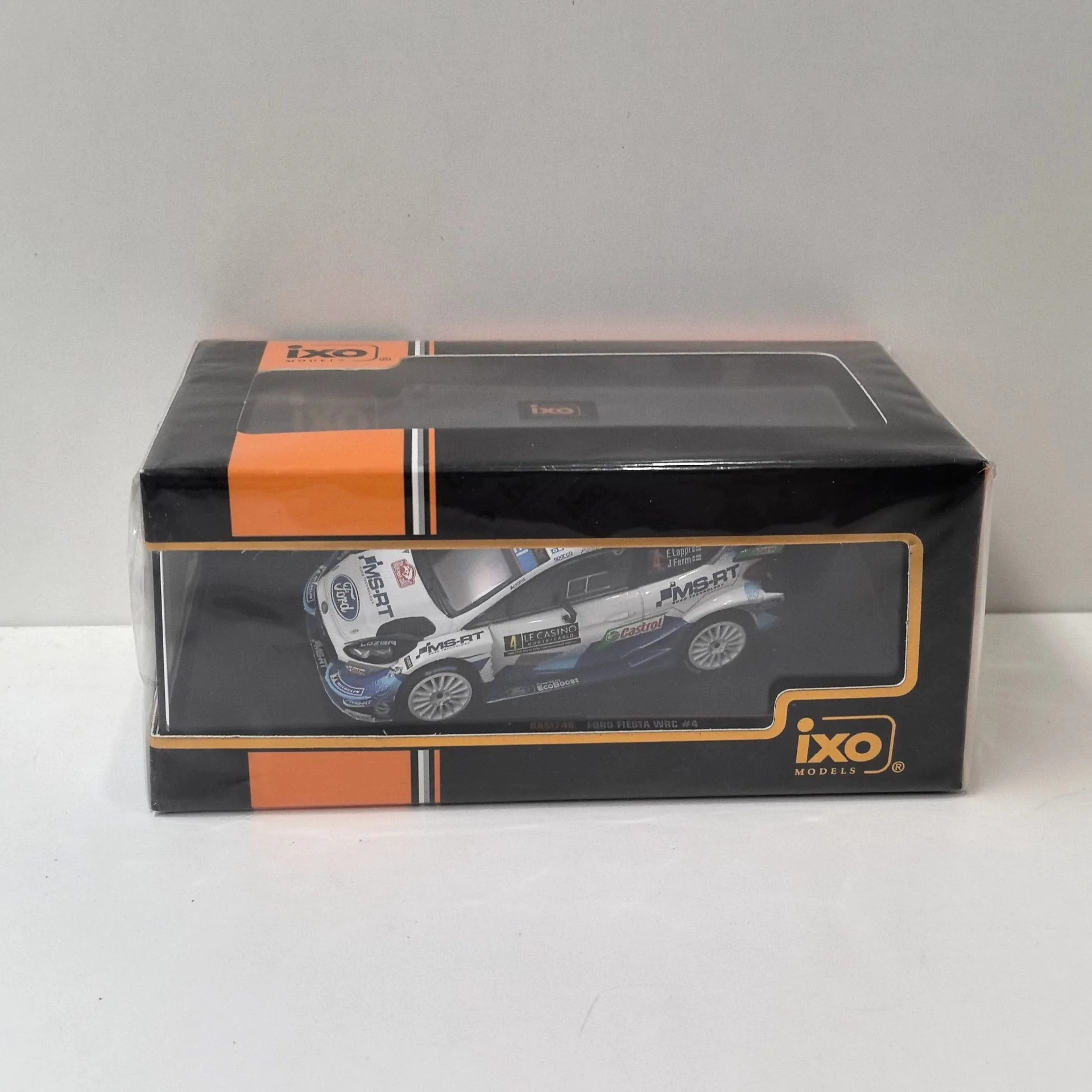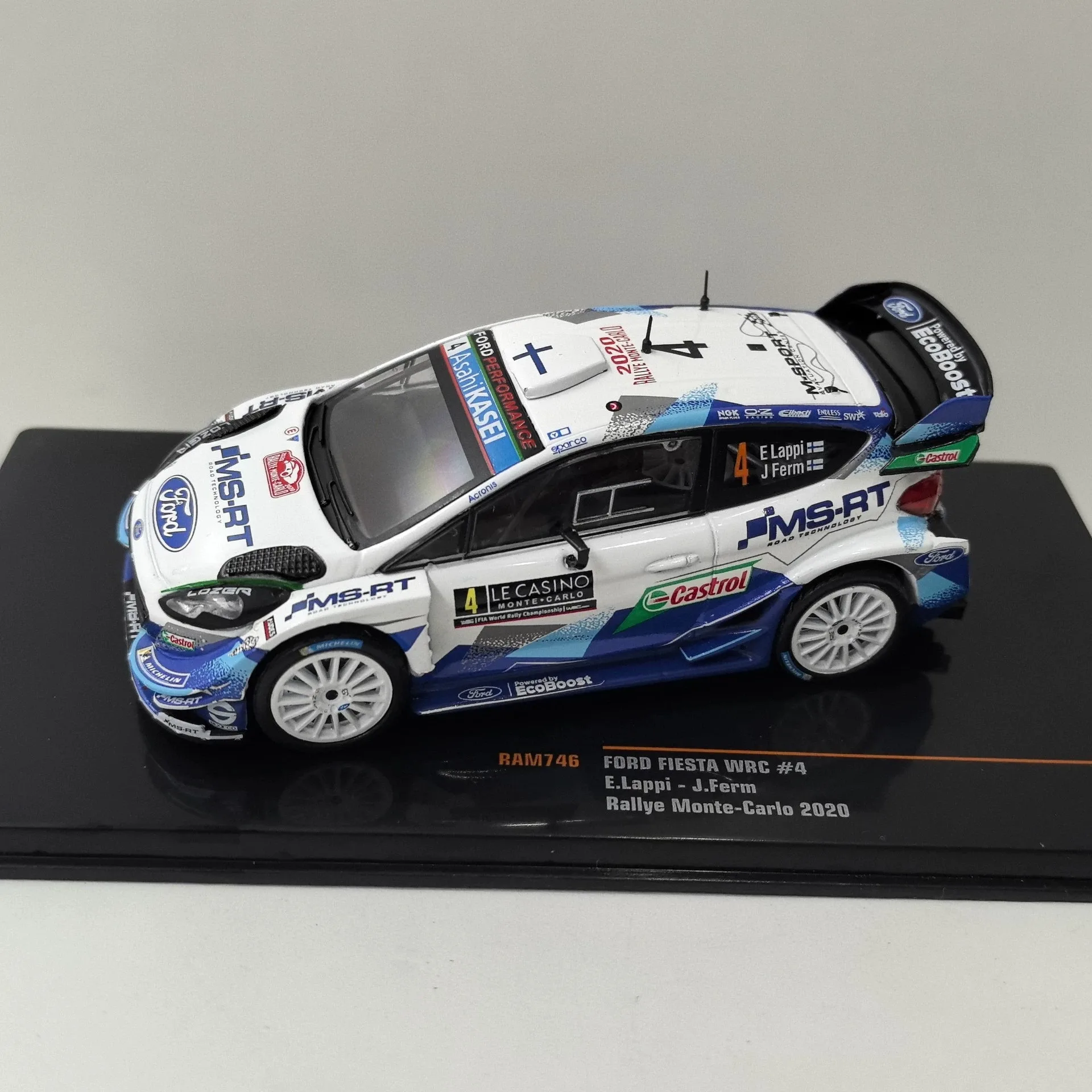 This highly detailed 1:43 scale diecast model of the 2020 Ford Fiesta #4 captures the sporty and aerodynamic design with a sleek white finish, vibrant sponsor decals, and racing livery. Featuring functional wheels, transparent windows revealing a finely crafted interior, and intricate details like a large rear wing spoiler, vented hood, front splitter, and textured tires, this collectible showcases realism and craftsmanship. Made of metal, it is a finished, non-electric display piece suitable for adult collectors and enthusiasts. Sold with the original box, it makes a perfect gift for those who appreciate high-quality miniature race car replicas.